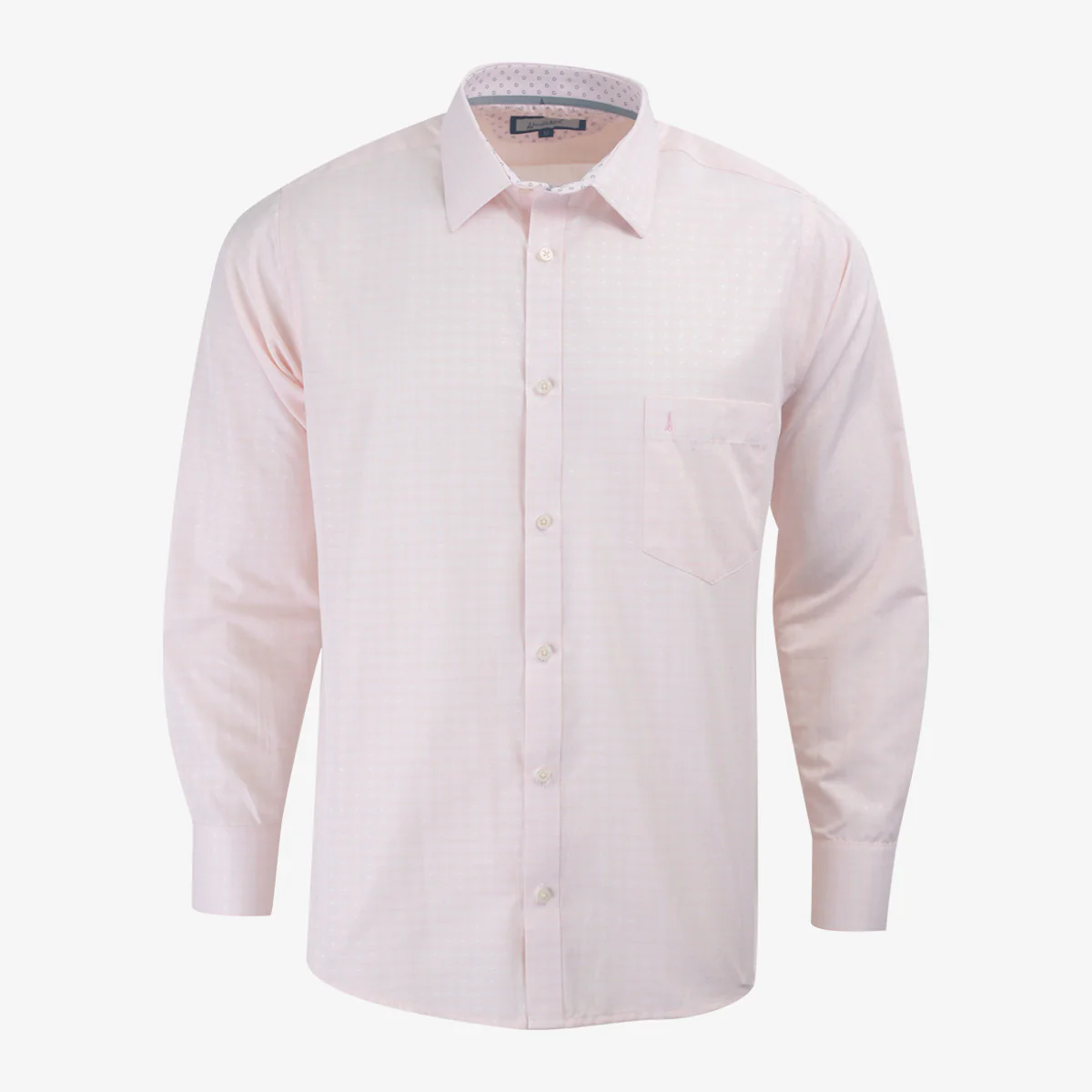 Descubre la camisa Custom de manga larga en un suave tono rosado claro, confeccionada con una mezcla de poliéster 80% y algodón 20% que garantiza durabilidad y comodidad durante todo el día.
