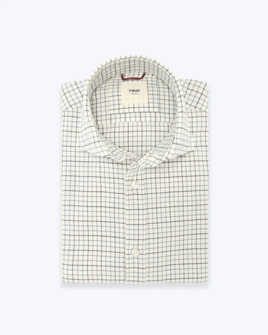 Camisa de color blanco hueso, de cuadros azules y grises, de la marca Tway.