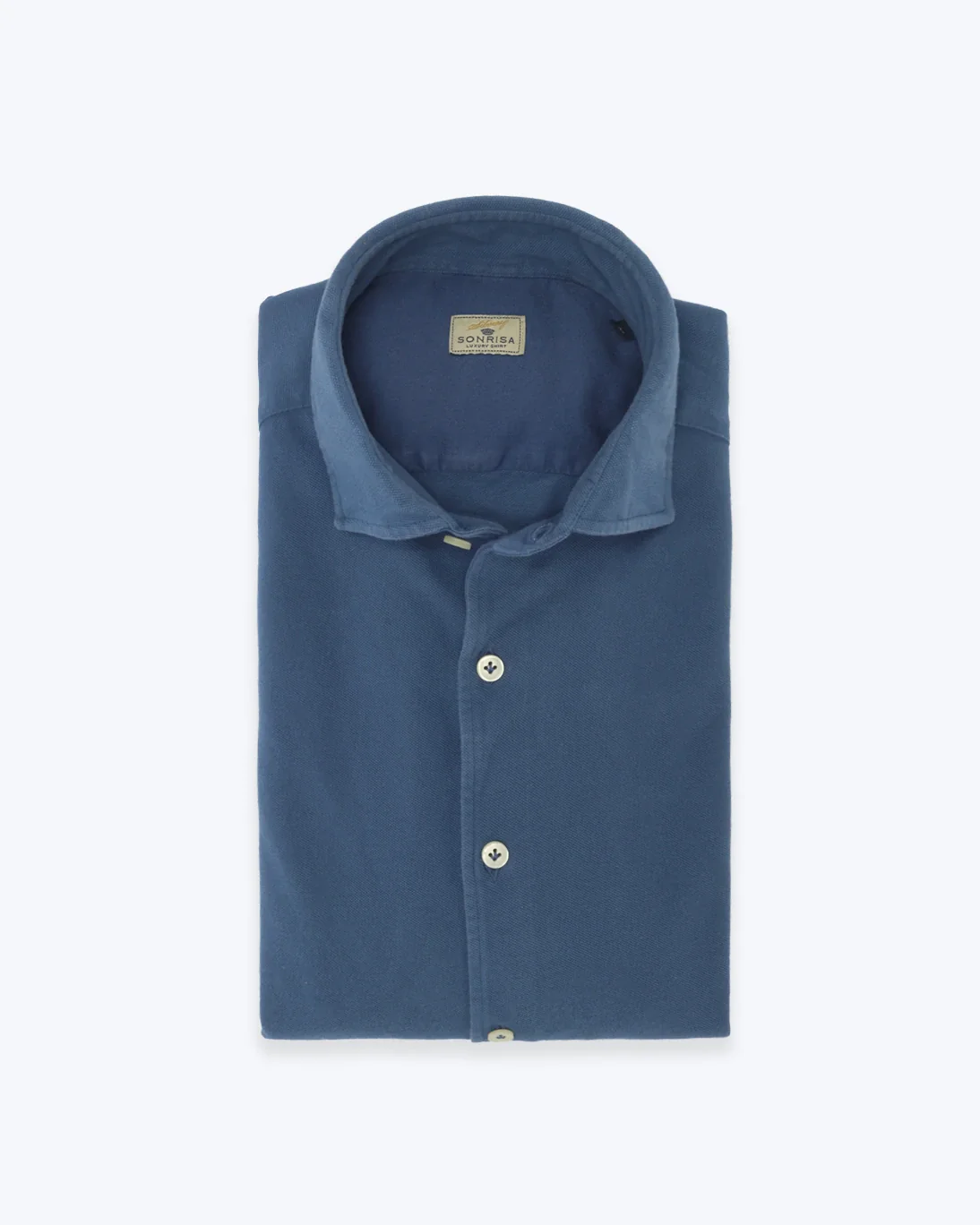 Camisa de piqué, en color azul medio de la marca Sonrisa, confeccionada en un algodón suave y cómodo.