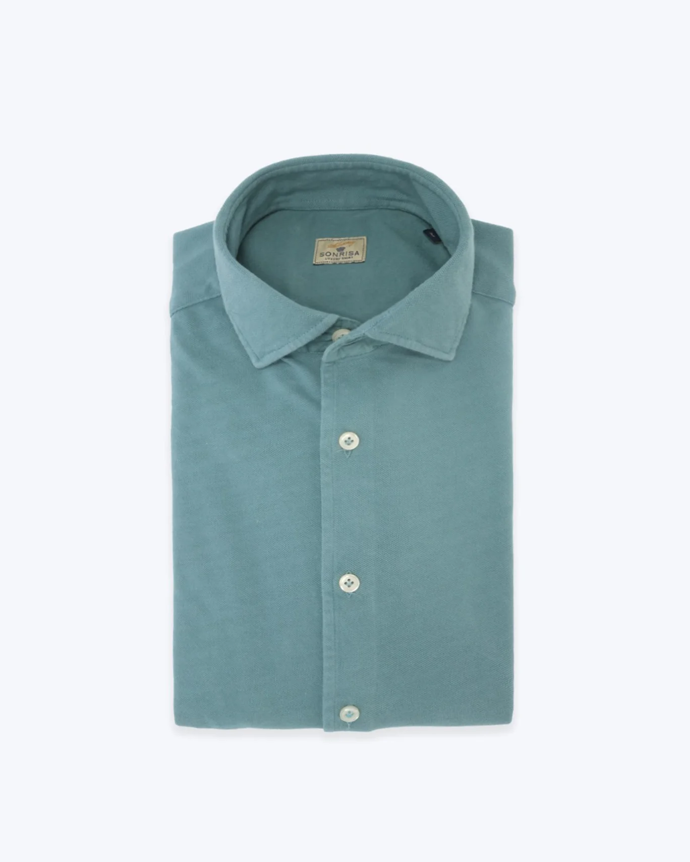 Camisa de piqué de la marca Sonrisa en color verde agua, con el cuello cutaway.