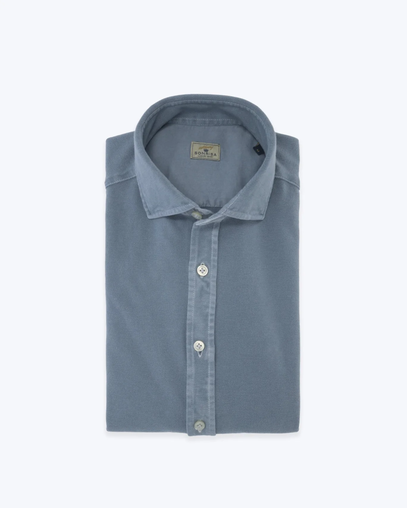 Camisa de piqué, en color azul de la marca Sonrisa, confeccionada en un algodón suave y cómodo.