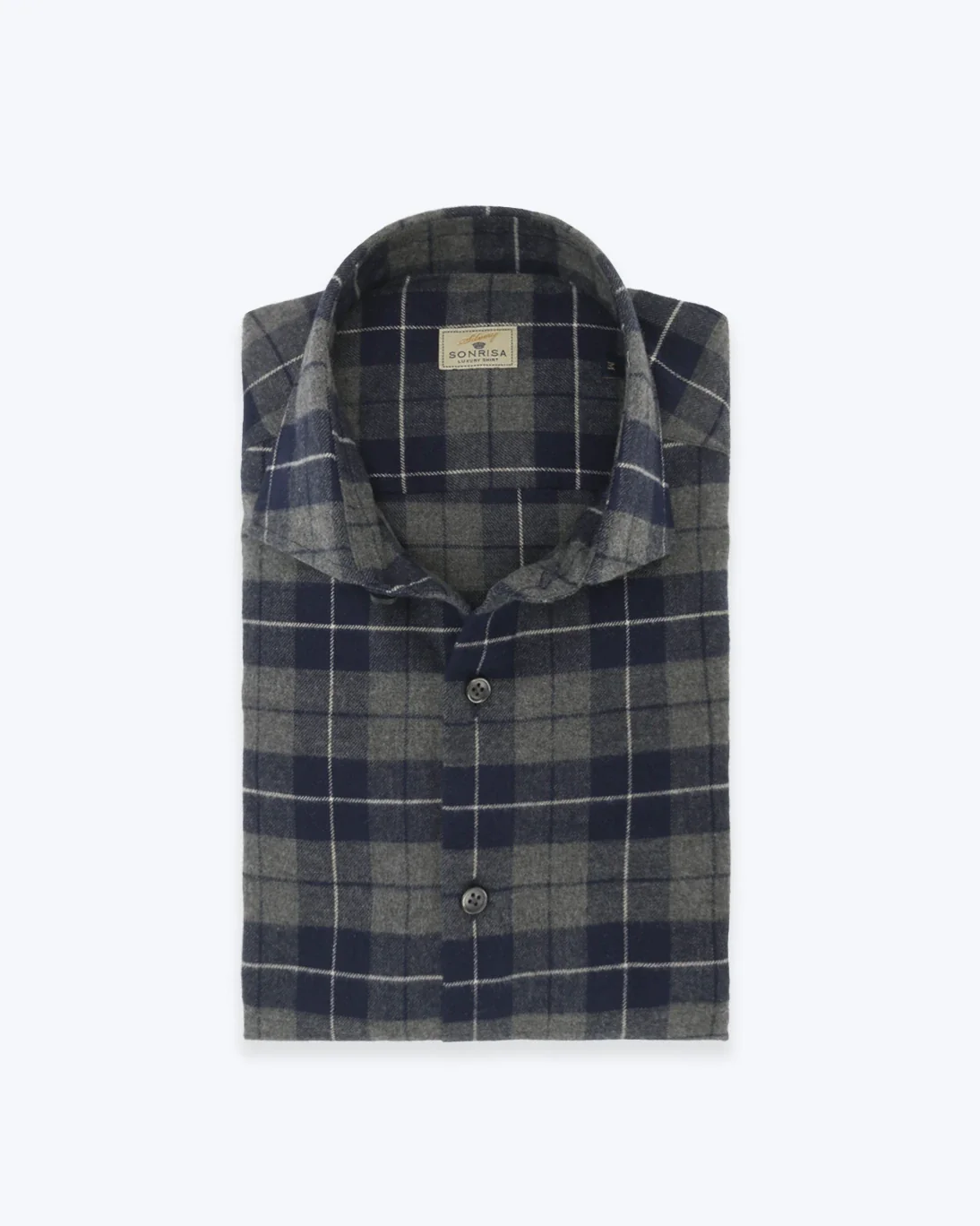 Camisa de la línea Luxury de la icónica marca Sonrisa, confeccionada en un elegante estampado escoces y elaborada íntegramente en suave franela de 100% algodón, lo que garantiza una sensación de calidez, suavidad y confort excepcionales, especialmente indicada para los meses más fríos del año.