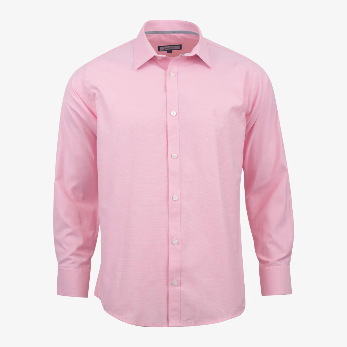 Camisa manga larga clásica diseño dobby, silueta slim, composicion 50% poliéster – 50% algodón, esta camisa es el complemento perfecto para tus trajes y pantalones; combinalo con una corbata o pajarita.