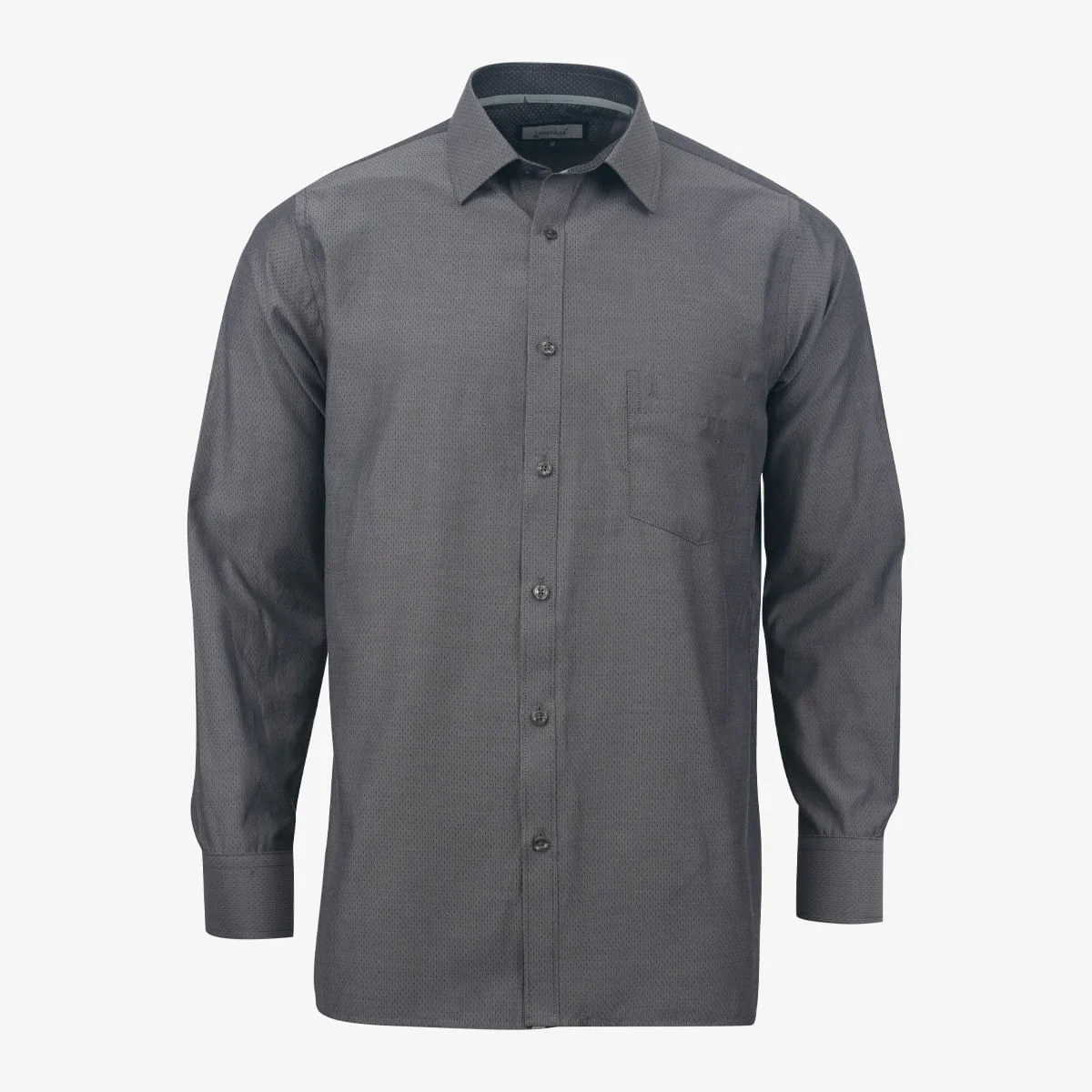 Camisa manga larga clásica diseño dobby, silueta regular, composicion 55% poliéster – 45% algodón, esta camisa es el complemento perfecto para tus trajes y pantalones; combinalo con una corbata o pajarita.