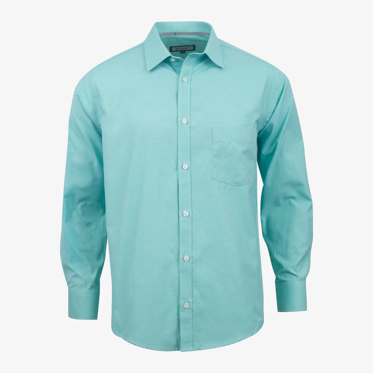 Camisa manga larga clásica diseño dobby, silueta kustom, composicion 50% poliéster – 50% algodón, esta camisa es el complemento perfecto para tus trajes y pantalones; combinalo con una corbata o pajarita.
