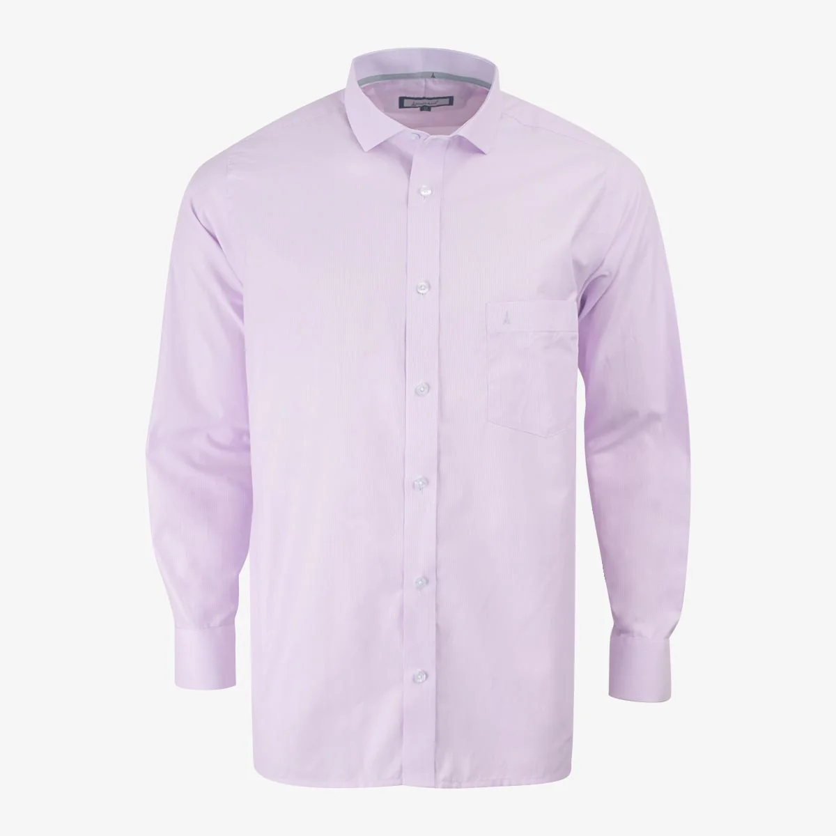 Camisa manga larga clásica diseño mil rayas, silueta regular, composicion 50% poliéster – 50% algodón, esta camisa es el complemento perfecto para tus trajes y pantalones; combinalo con una corbata o pajarita.