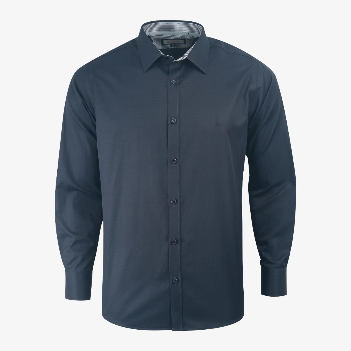 Camisa manga larga clásica diseño dobby, silueta slim, composicion 50% poliéster – 50% algodón, esta camisa es el complemento perfecto para tus trajes y pantalones; combinalo con una corbata o pajarita.