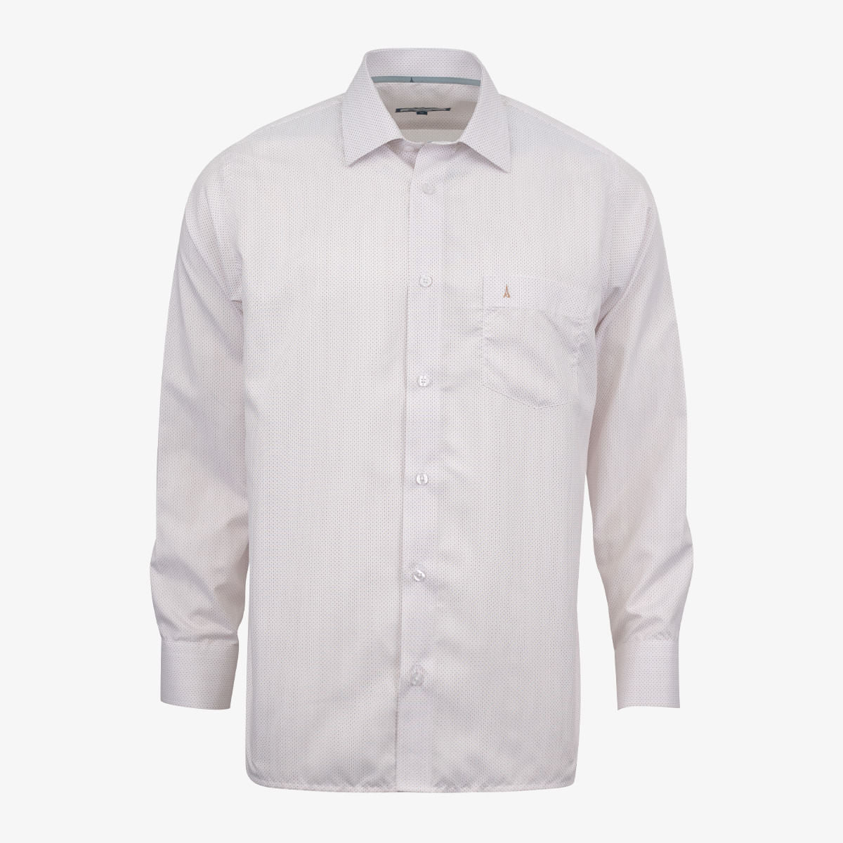 Camisa manga larga clásica diseño estampado, silueta regular, composicion 100% poliéster, esta camisa es el complemento perfecto para tus trajes y pantalones; combinalo con una corbata o pajarita.