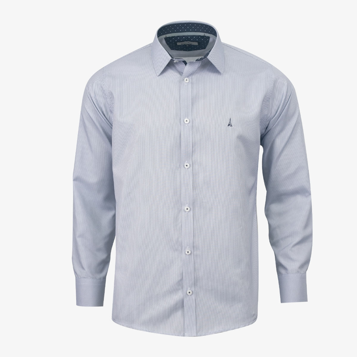 Camisa manga larga clásica diseño estampado, silueta slim, composicion 100% poliéster, esta camisa es el complemento perfecto para tus trajes y pantalones; combinalo con una corbata o pajarita.