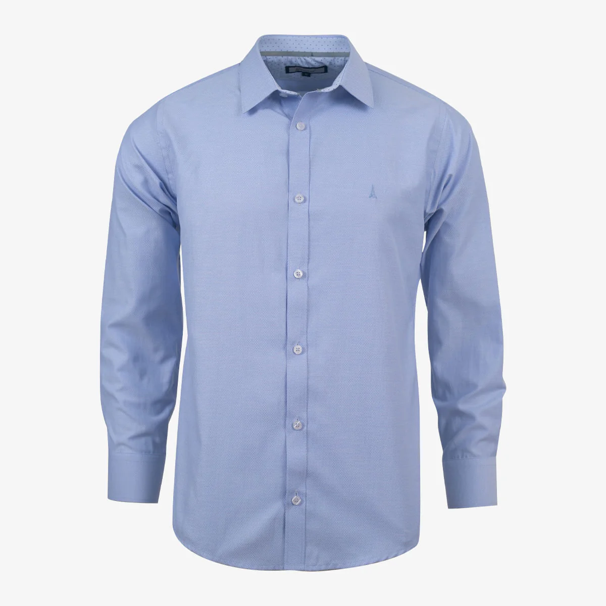 Camisa manga larga clásica diseño dobby, silueta slim, composicion 50% poliéster – 50% algodón, esta camisa es el complemento perfecto para tus trajes y pantalones; combinalo con una corbata o pajarita.