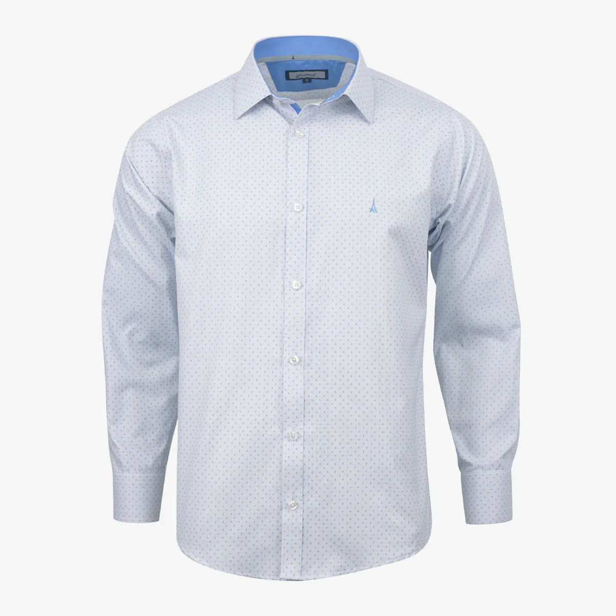 Camisa manga larga clásica diseño mini print, silueta slim, composicion 60% poliéster – 40% algodón, esta camisa es el complemento perfecto para tus trajes y pantalones; combinalo con una corbata o pajarita.