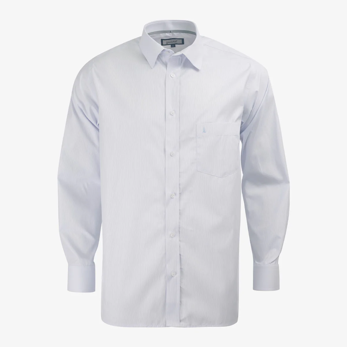 Camisa manga larga clásica diseño mil rayas, silueta regular, composicion 50% poliéster – 50% algodón, esta camisa es el complemento perfecto para tus trajes y pantalones; combinalo con una corbata o pajarita.