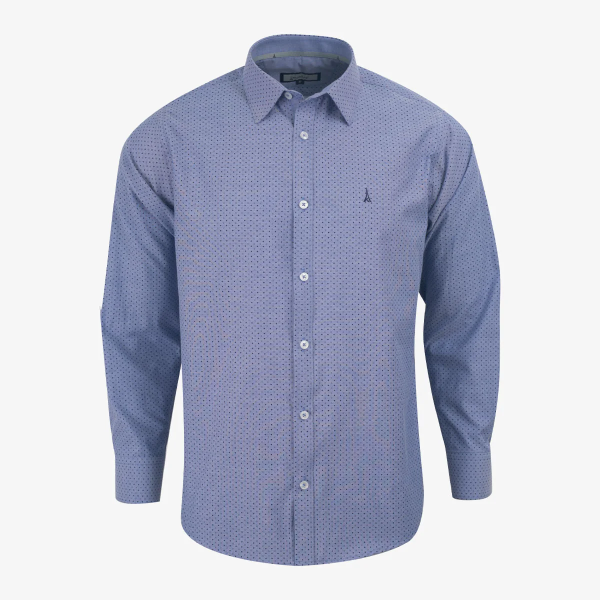 Camisa manga larga clásica diseño mini print, silueta slim, composicion 60% poliéster – 40% algodón, esta camisa es el complemento perfecto para tus trajes y pantalones; combinalo con una corbata o pajarita.