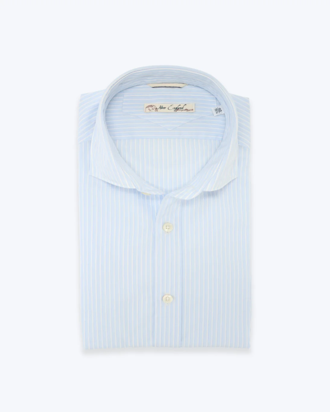 Tiene el cuello cutaway, tapeta con botones y manga larga acabada en puño con botón.
