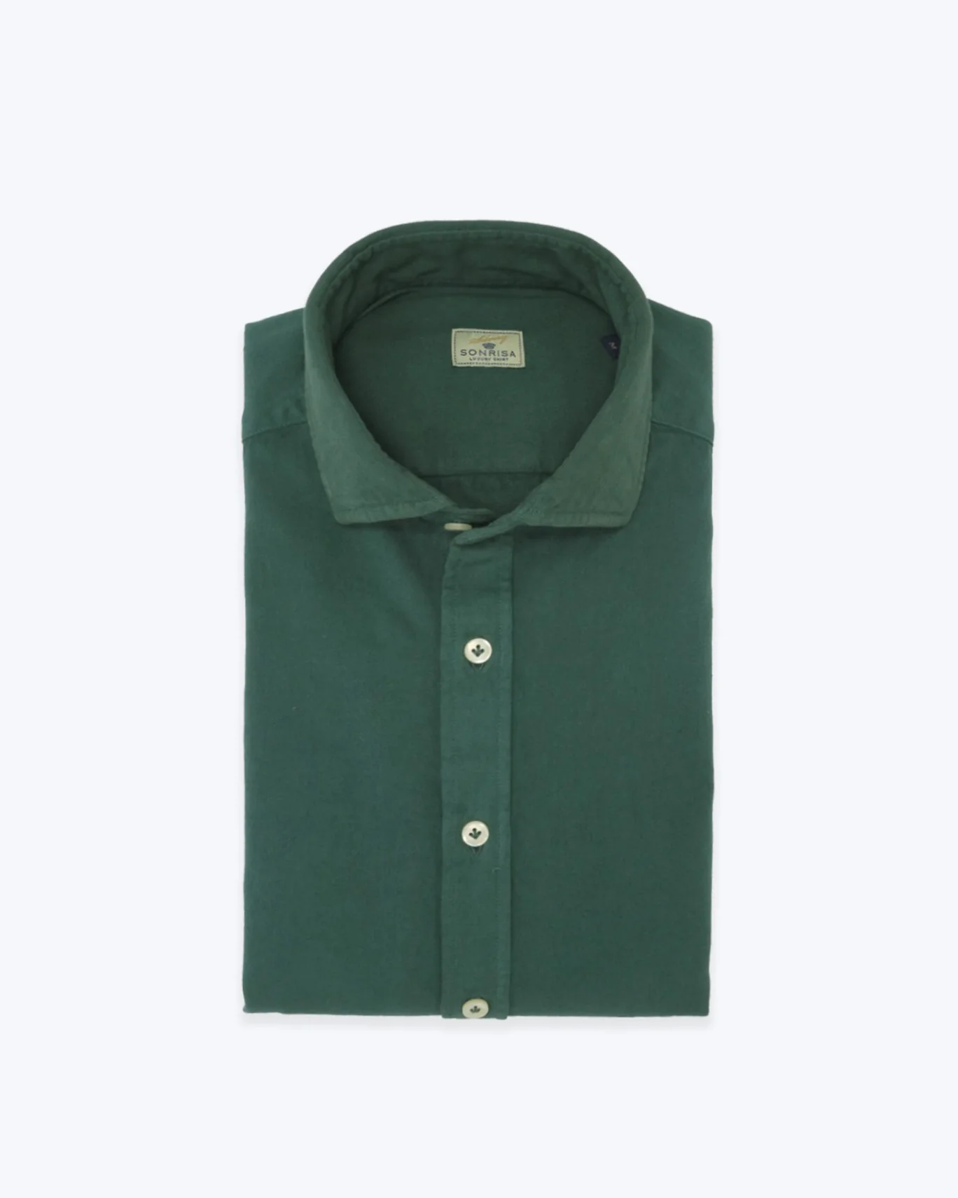 Camisa de la marca Sonrisa en color verde, con el cuello cutaway y tapeta con botones.