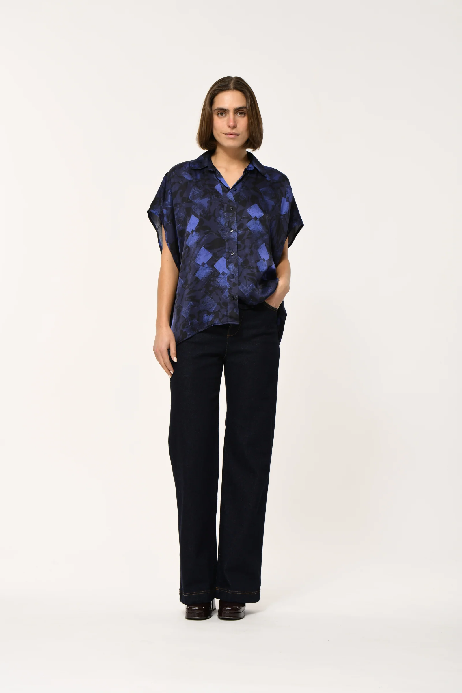 Camisa amplia, holgada, mangas cortas de kimono
