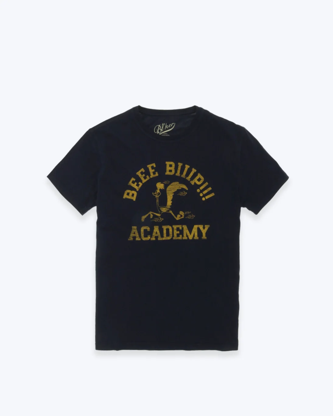 Camiseta de manga corta de la marca Bl´ker, de color navy, con un dibujo a la altura del pecho.