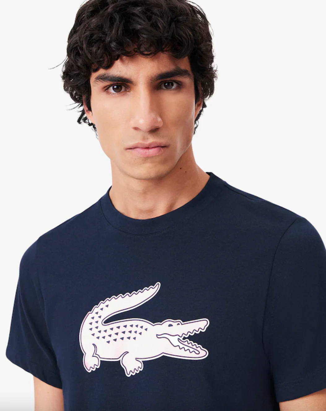 Camiseta de manga corta, tejido calado y cuello redondeado.