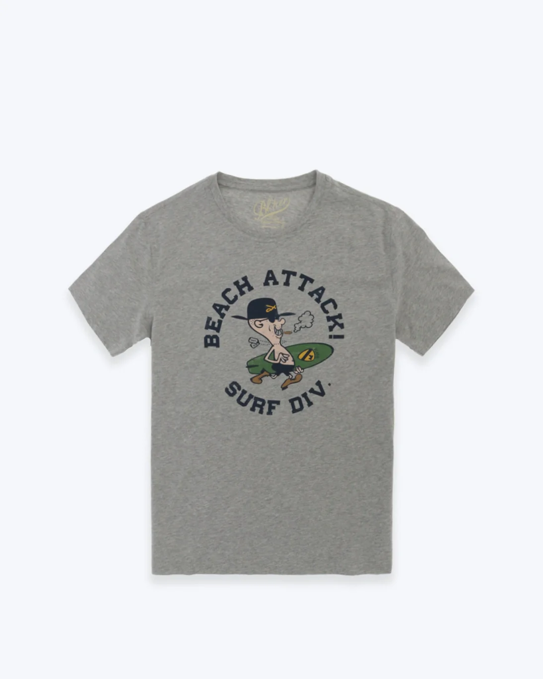 Camiseta de manga corta de la marca Bl´ker, de color gris, con un dibujo a la altura del pecho.