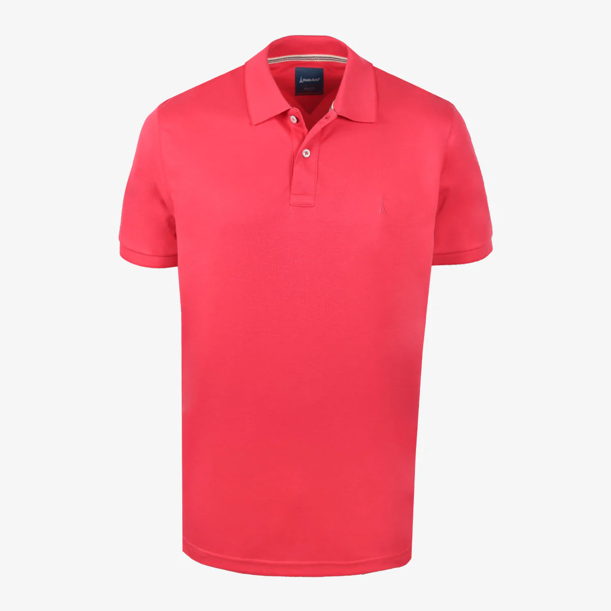 Descubre la camiseta polo con silueta regular en un vibrante tono rosado oscuro, diseñada para ofrecer comodidad y estilo en cualquier momento. Esta camiseta está confeccionada en una mezcla de algodón 60% y poliéster 40%, lo que garantiza una prenda fresca, resistente y de secado rápido.