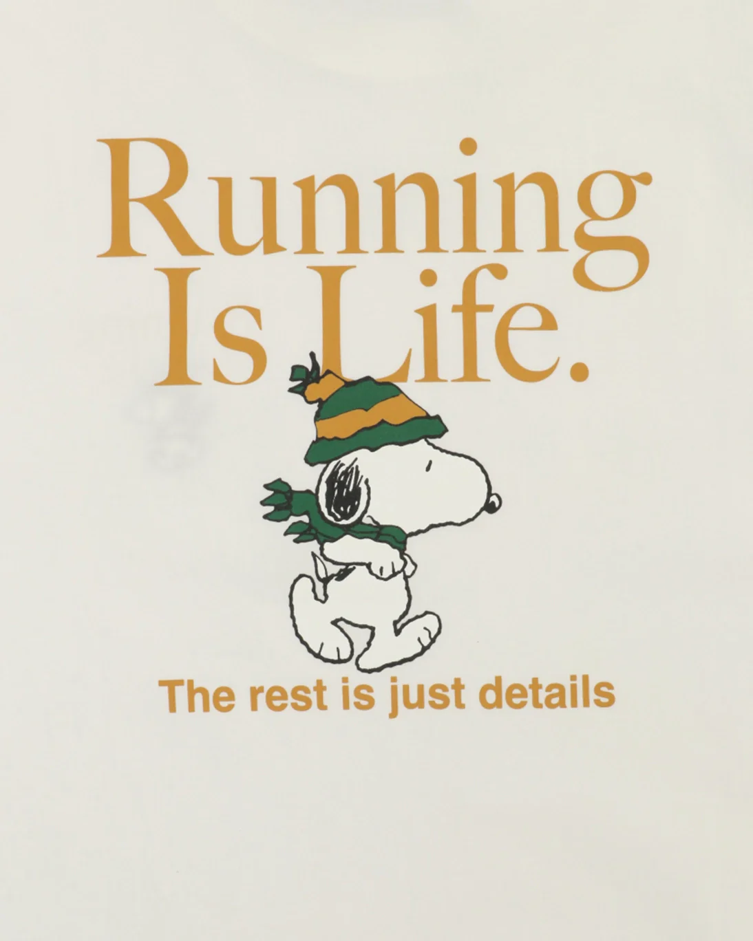 Camiseta ‘running is life de snoopy‘, en color blanco roto, de la marca INTHEBOX.