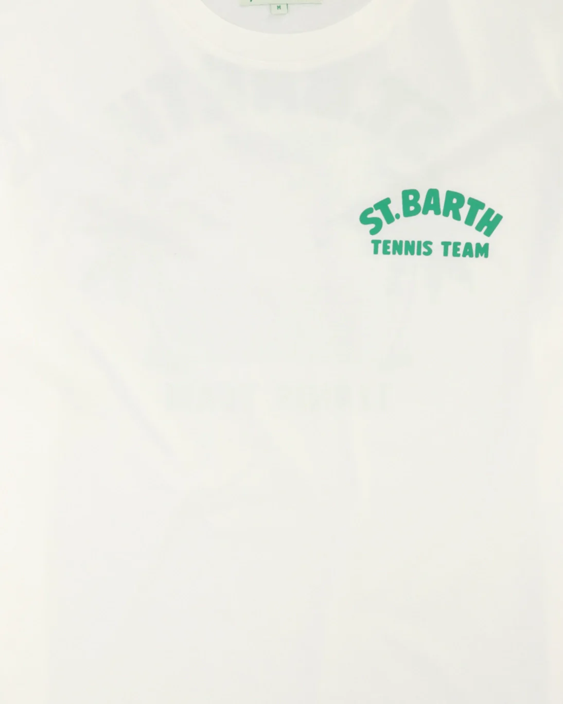 Camiseta de manga corta de la marca MC2, de color blanca. Con un dibujo en la parte trasera, otro en un lado de la manga y otro en la parte trasera.