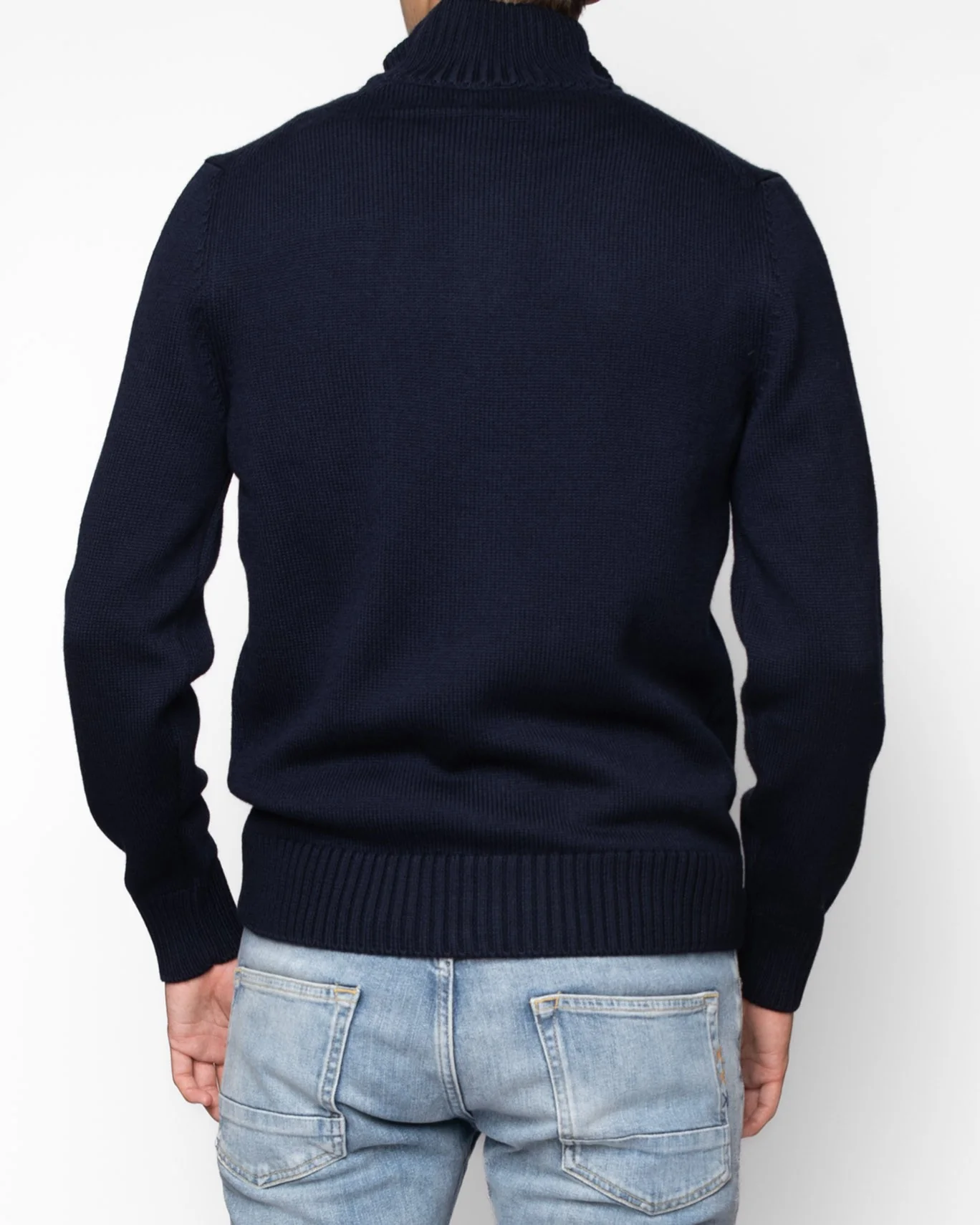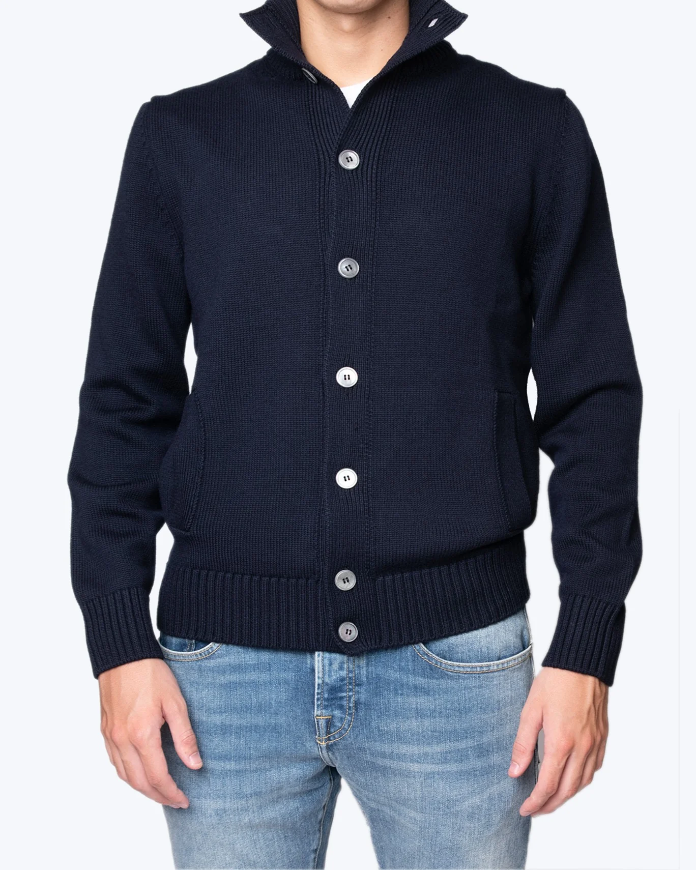 Cárdigan de la marca Gran Sasso en color navy, fabricado exclusivamente para Fulham. Confeccionado en tejido de lana vergine.