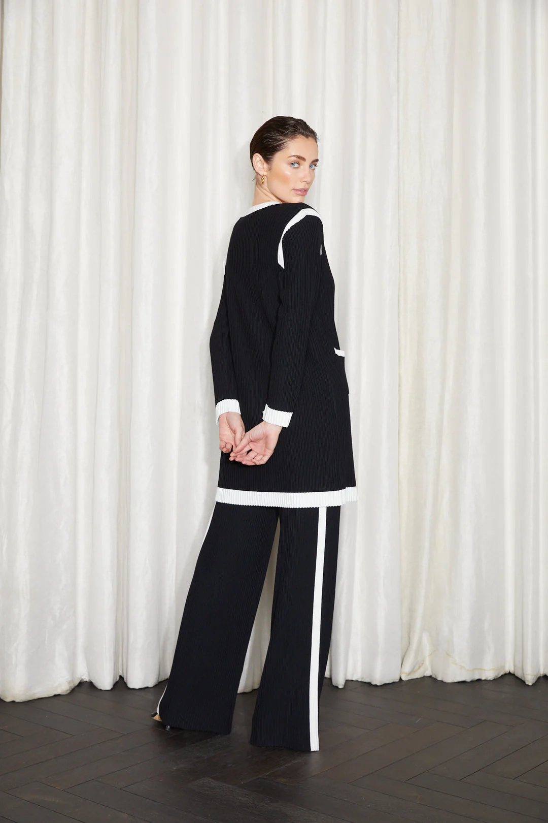 Presentamos el cárdigan Ermi, una prenda versátil perfecta para el uso diario. Su diseño atemporal presenta una textura acanalada que agrega estilo y brillo, bolsillos frontales y ribetes blancos. La silueta holgada es ideal para llevar encima de una camisola o un jersey de cuello alto, y combina perfectamente con los pantalones de punto Antony a juego.