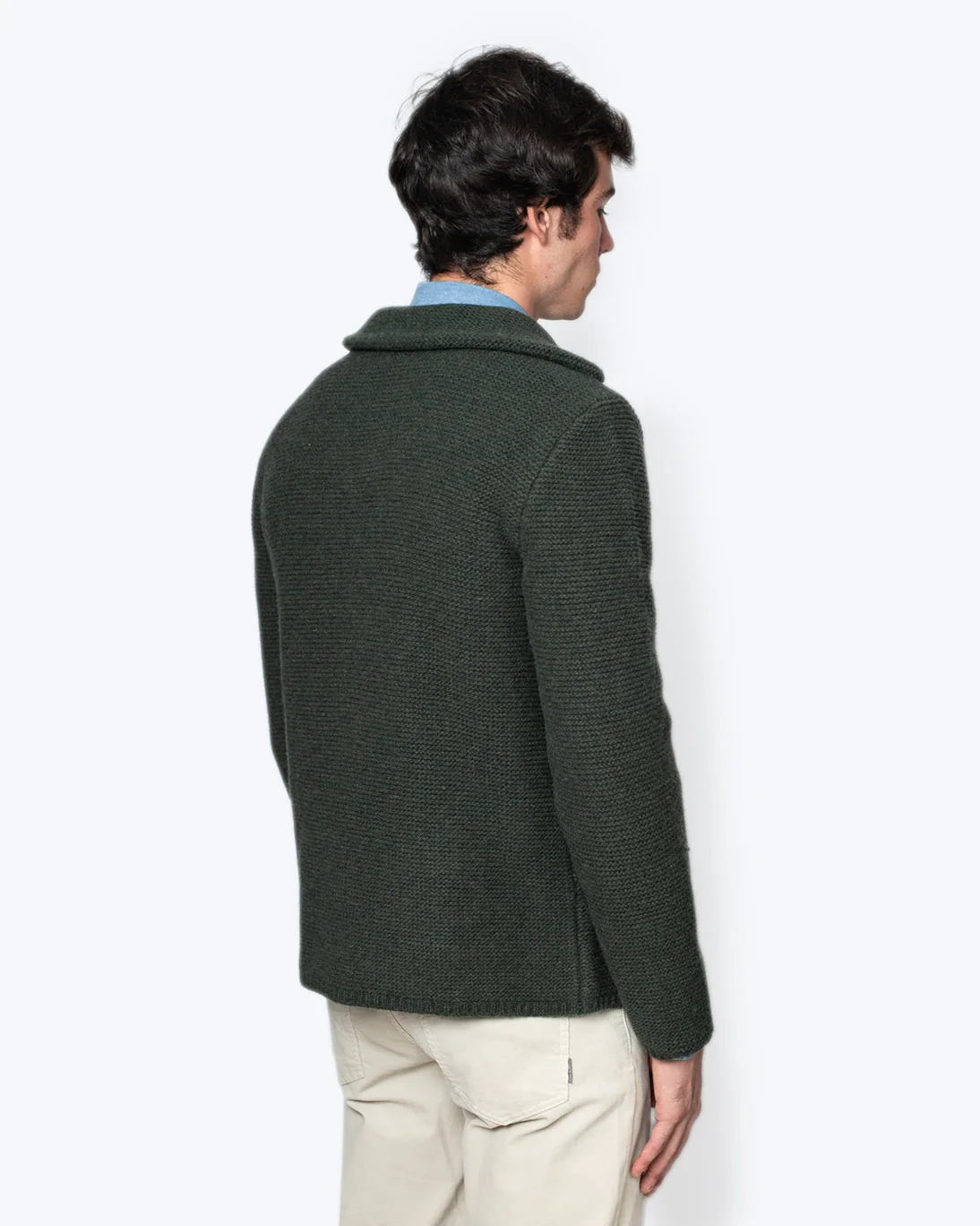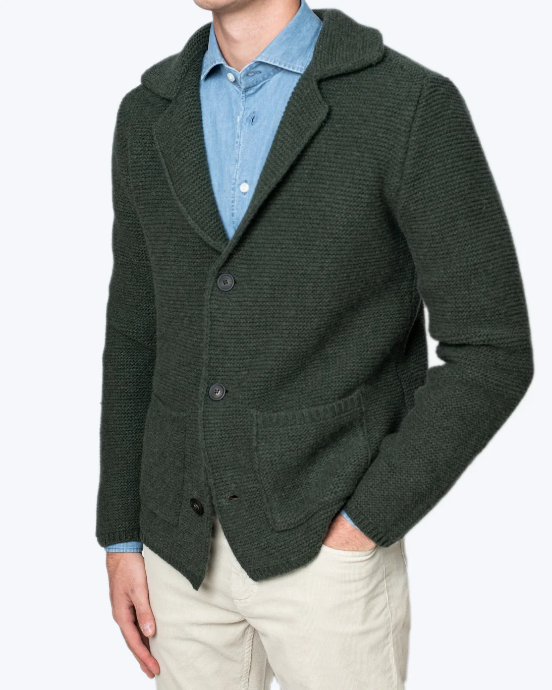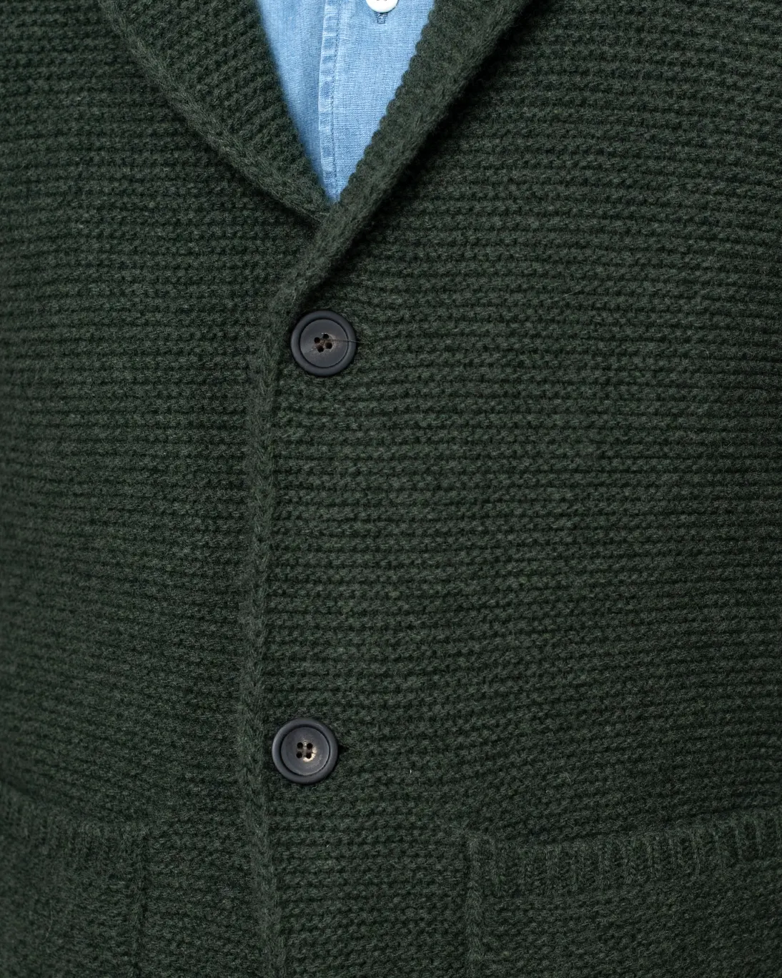 Elaborado en punto grueso de primera calidad, presenta un cierre de tres botones, dos bolsillos en la parte delantera y detalles cuidados en los puños y el bajo, que le confieren un aire elegante y distintivo.
