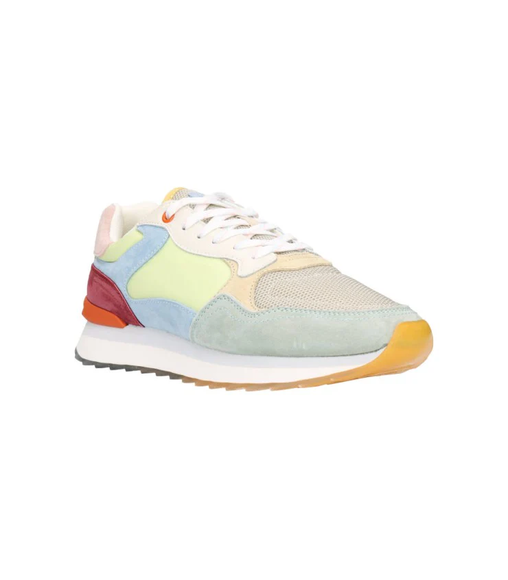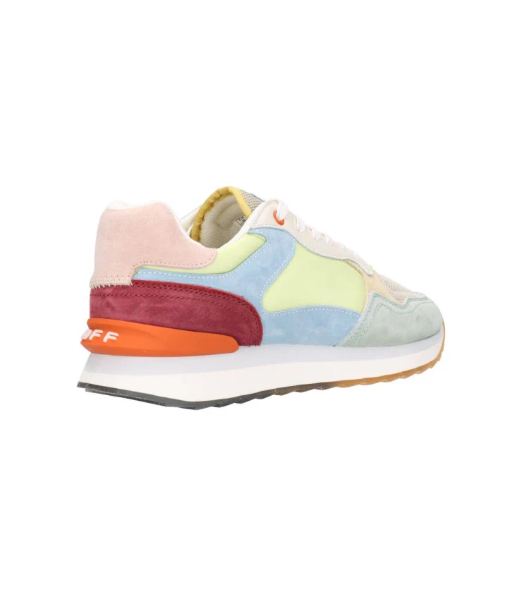 Zapatillas de la marca Hoff modelo City Cartagena de Indias. Zapatillas deportivas con cordones formada por piezas cortadas combinando diferentes materiales en diferentes tonalidades. Rejilla en poliéster transpirable. Plantilla extraíble de memory foam. Media suela de EVA de 3 cm de altura. Patín dentado en goma transparente con imagen serigrafiada.