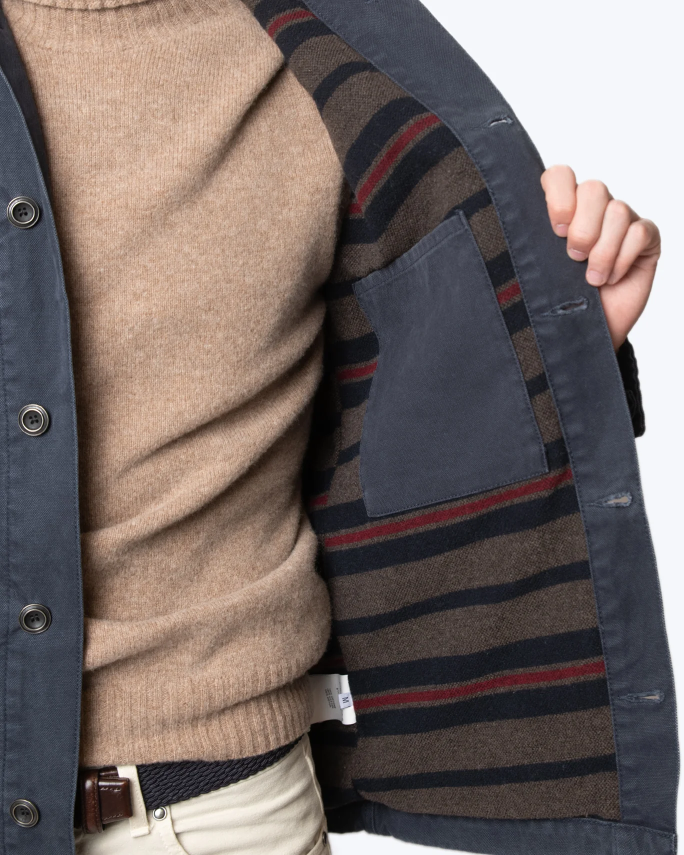 Cuenta con un cierre de botones. Además, incluye dos bolsillos exteriores y dos a la altura del pecho, uno de ellos con solapa y cierre de botón automático. En su interior, dispone de un bolsillo adicional.