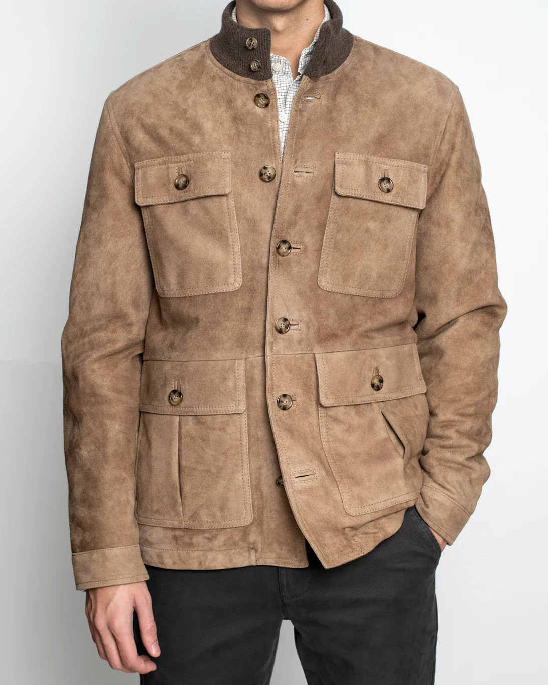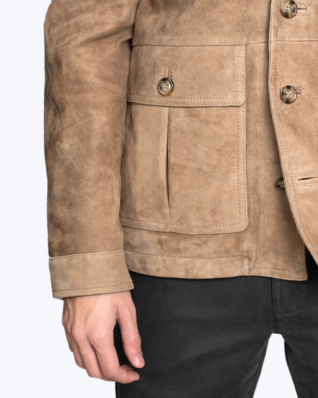 Cazadora beige de la firma italiana Valstar confeccionada en piel de ante.