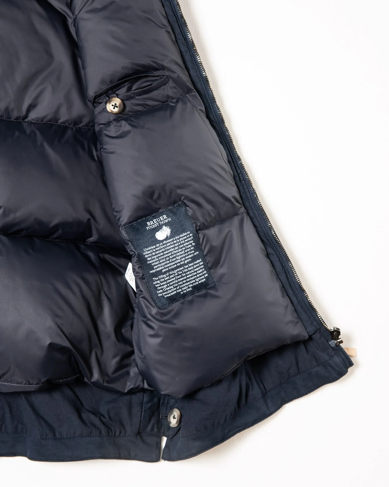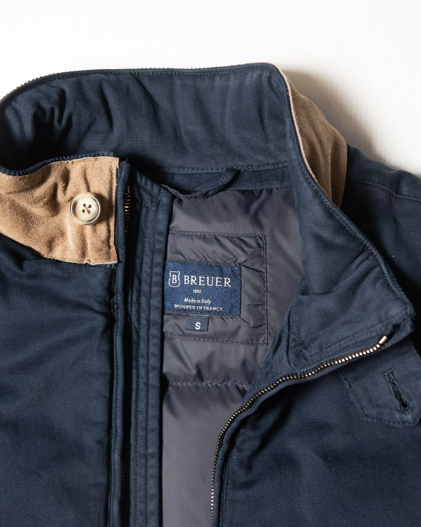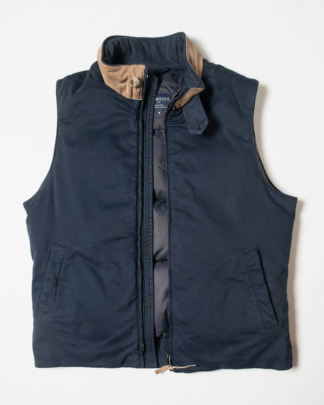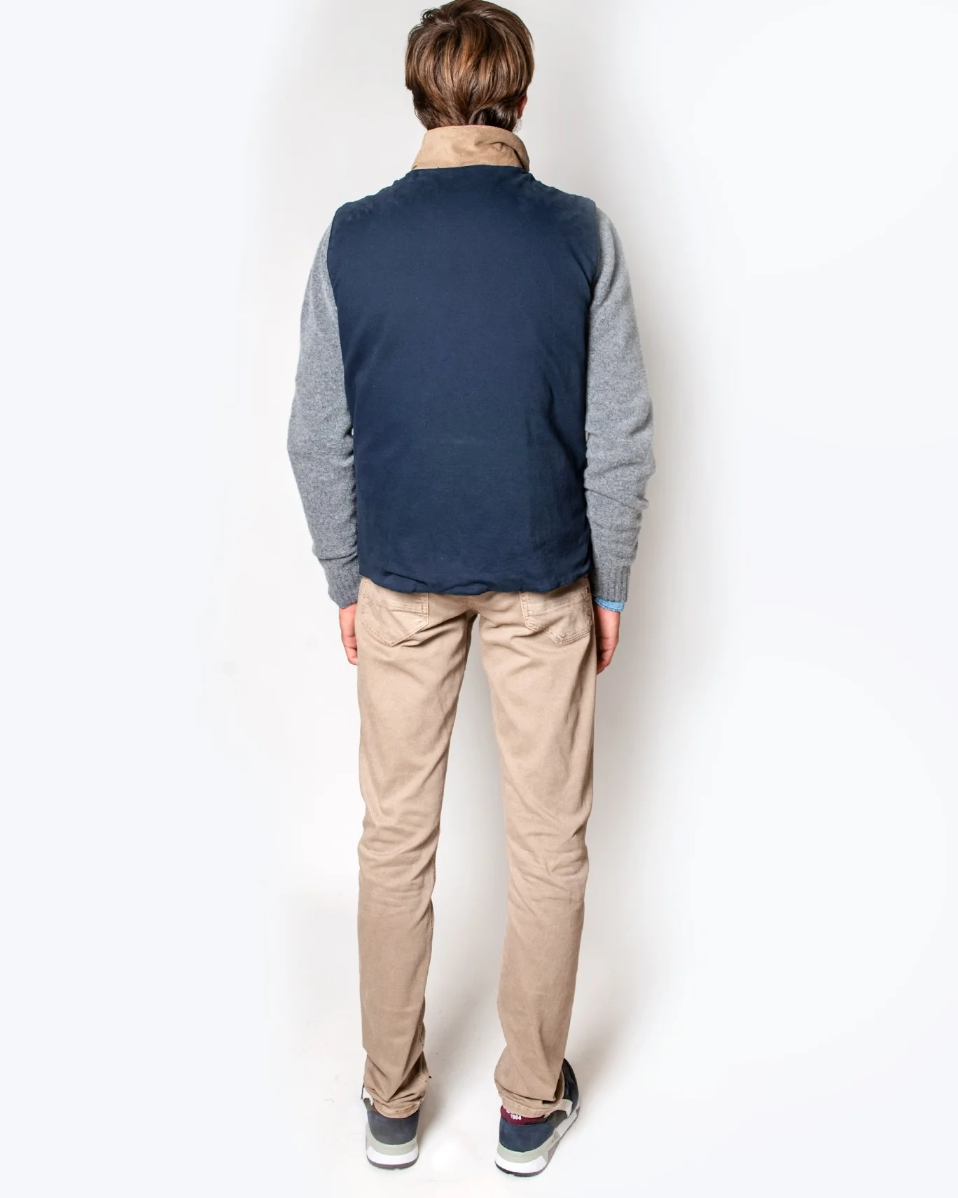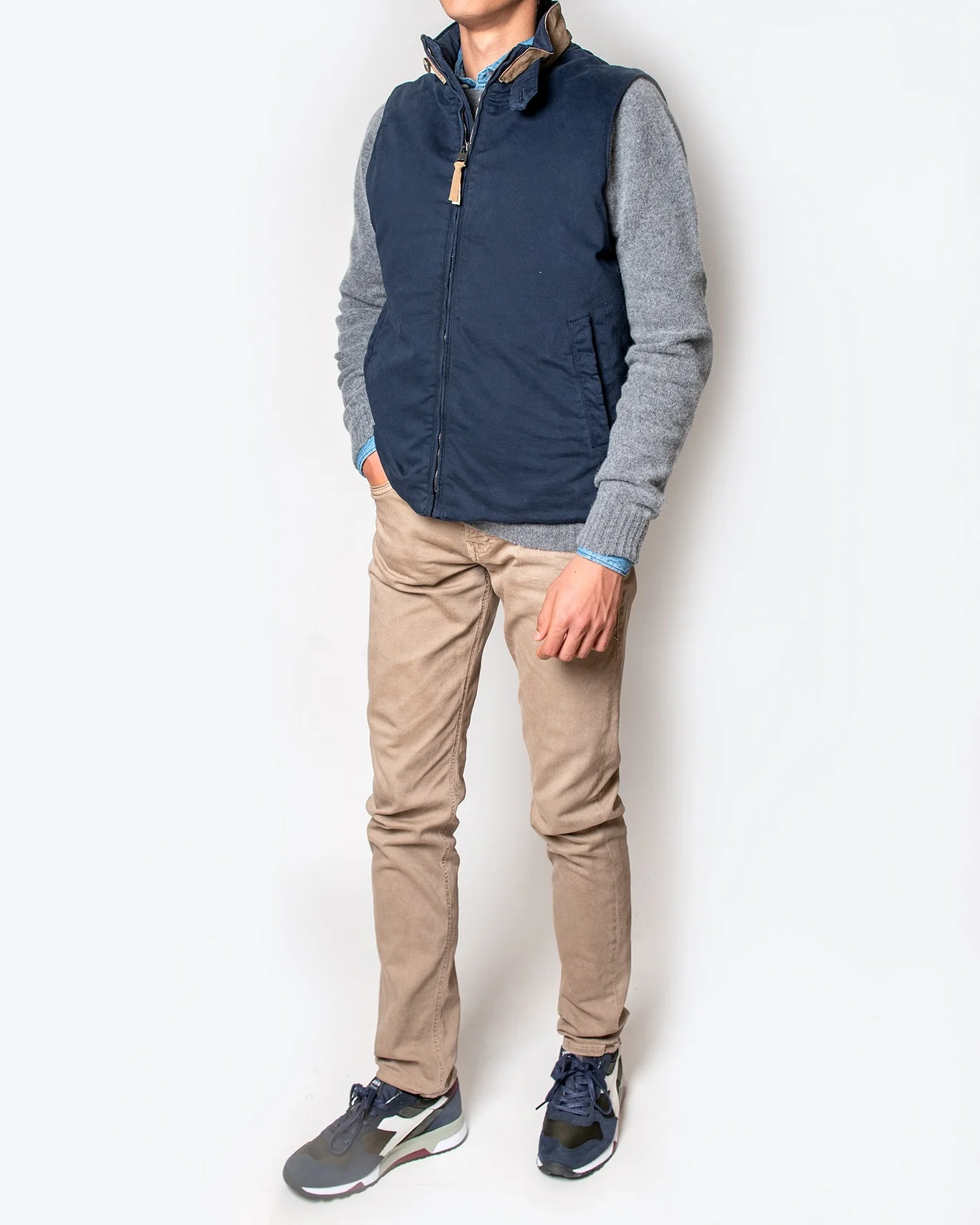 Chaleco de entretiempo de la marca Breuer, en color azul. Se cierra con cremallera frontal y tiene bolsillos laterales con botón automático. Además, presenta un dos bolsillos en el interior.