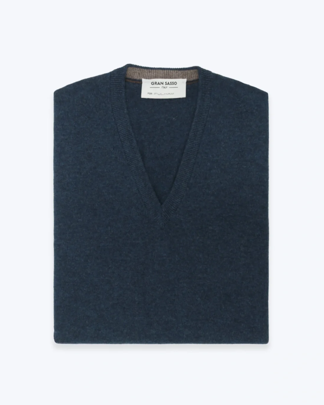 Chaleco de pico con cashmere en color azul de la marca Gran Sasso fabricado exclusivamente para Fulham.
