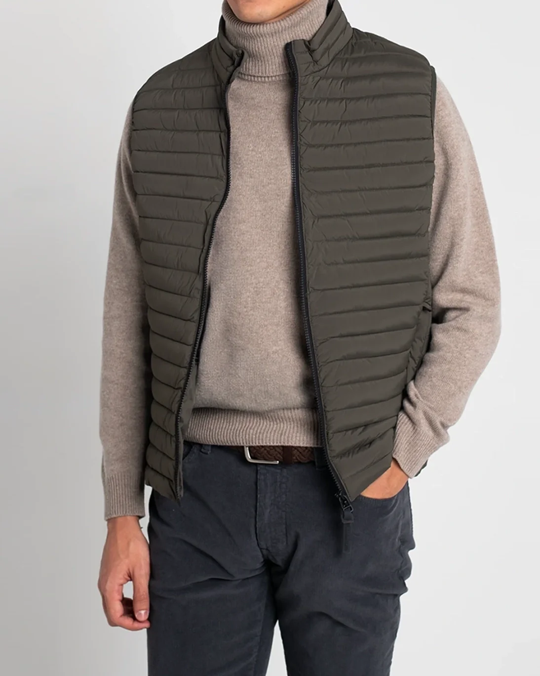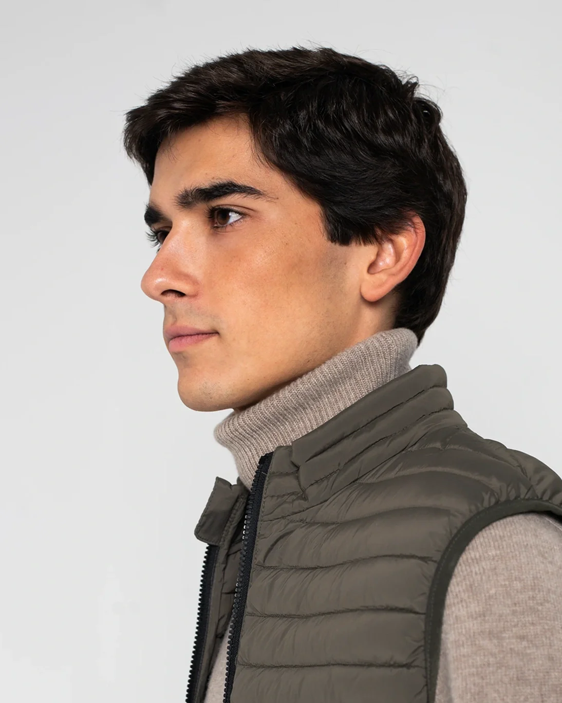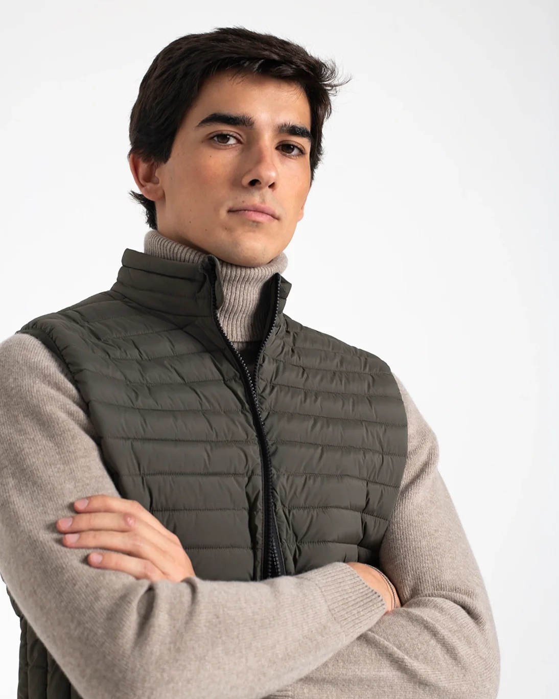 Chaleco acolchado de la marca Homeward, en color verde. Se cierra con cremallera frontal bidireccional y tiene bolsillos laterales con cremallera invisible. Además, tiene bolsillos en el interior.