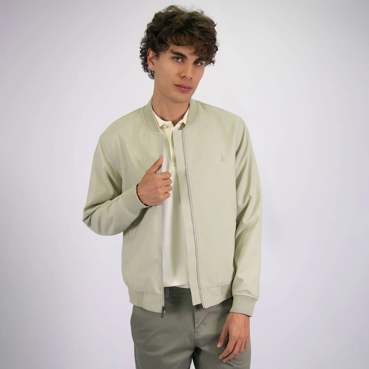 - Cuello tipo bomber que aporta un acabado moderno y versátil