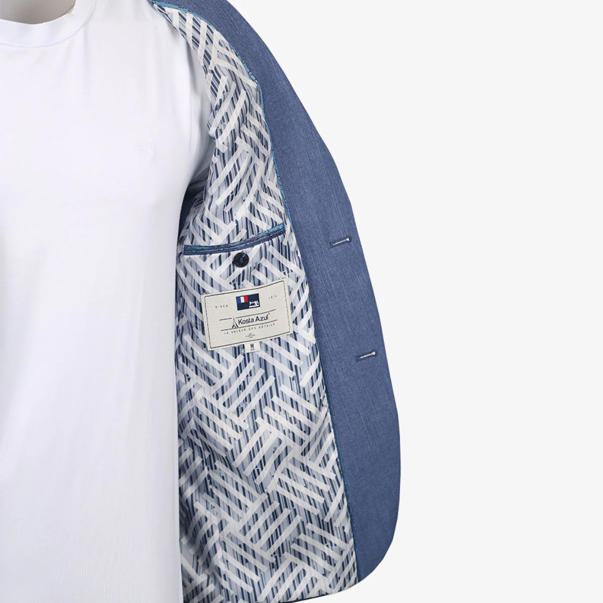 Su cuello con solapa cuadrada y fieltro en contraste, junto con la espalda con una abertura, facilitan la movilidad y aportan un diseño funcional y moderno. Las mangas sin aberturas y con forro garantizan un acabado limpio y cómodo.