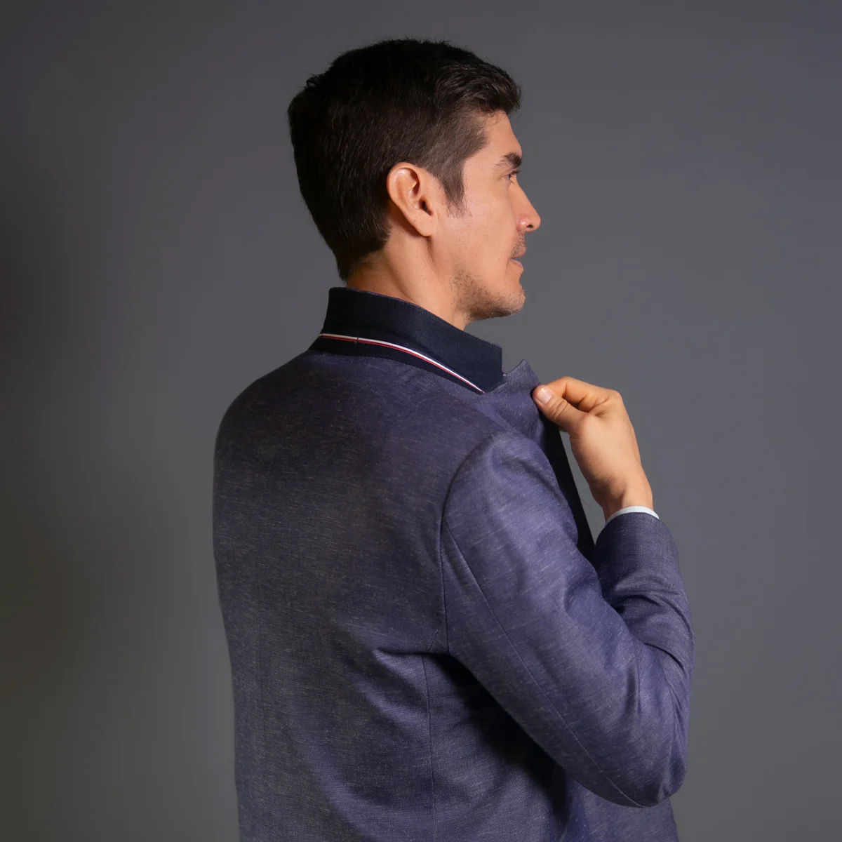 Su diseño semi desestructurado con forro completo brinda libertad de movimiento manteniendo una estructura impecable. Cuenta con cuello tipo tapa con detalle en fieltro y cinta tricolor en el interior que añade un toque especial, además de botones tricolores que realzan su acabado.