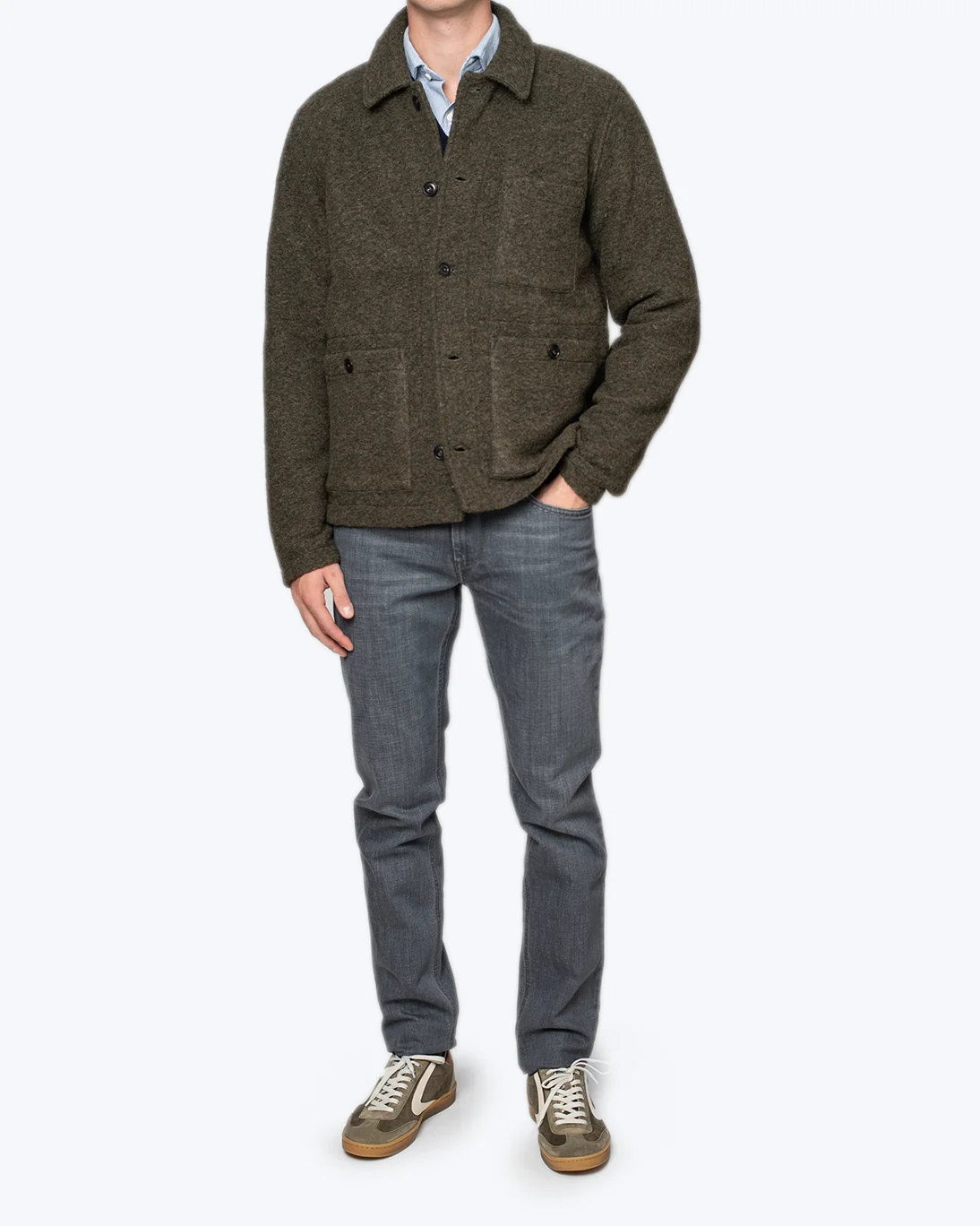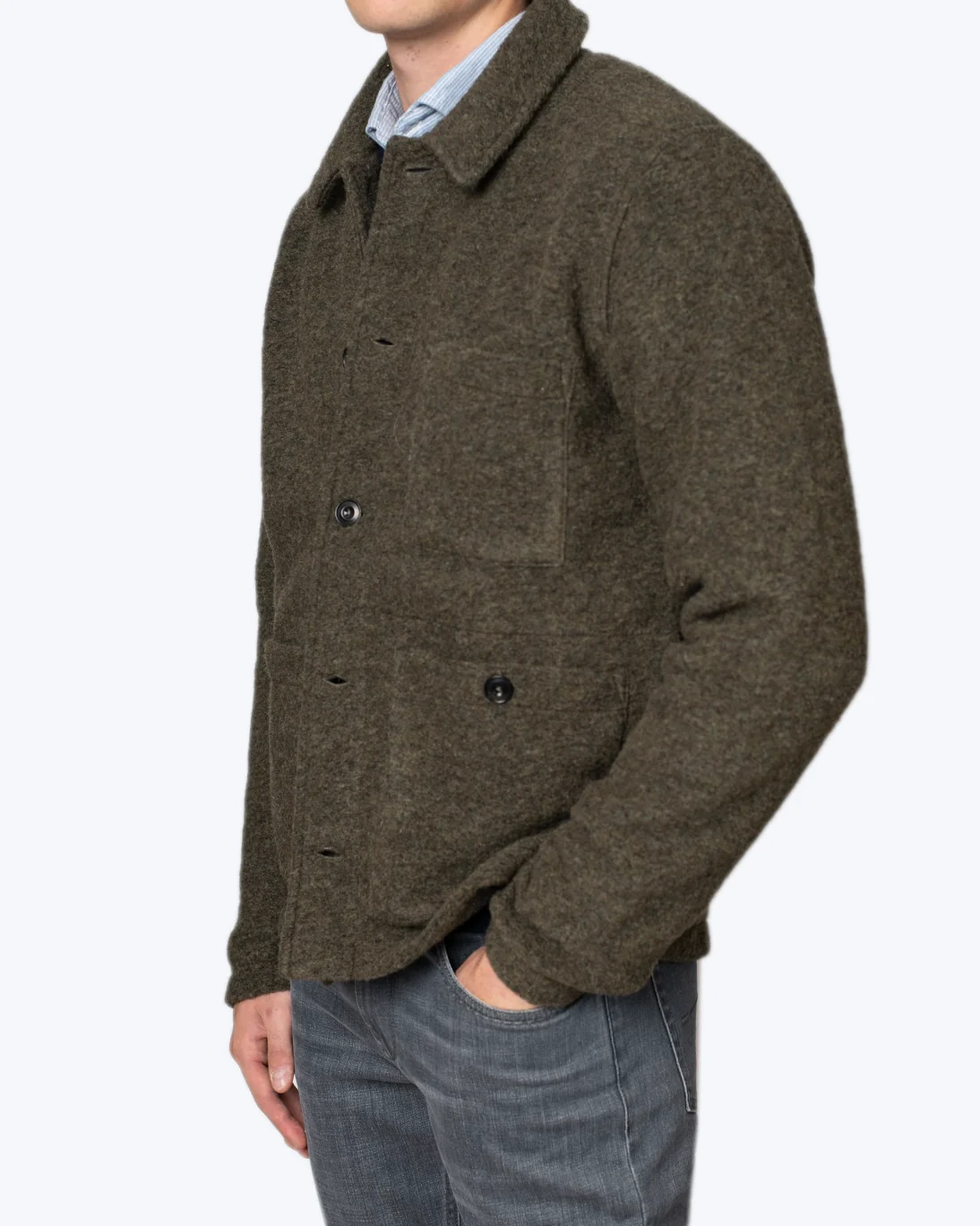 Chaqueta de lana verde de la marca Hartford, ideal para los días fríos.