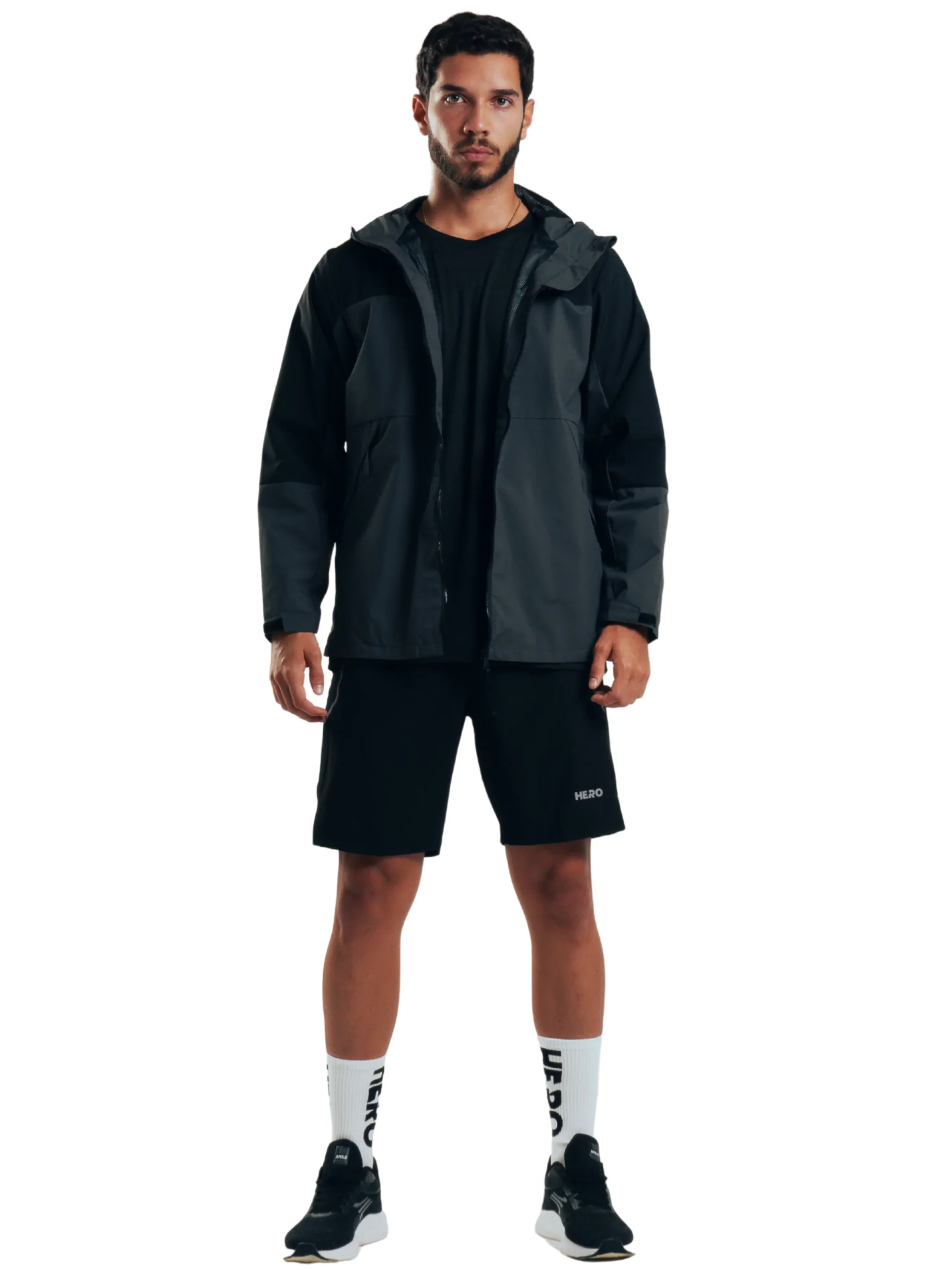 Esta funcional chaqueta de lluvia deportiva te mantendrá seco y cómodo durante tus actividades al aire libre. Su interior está forrado con una malla Shino que favorece la transpiración y evita la sensación pegajosa en días húmedos. El diseño se complementa con prácticos bolsillos frontales diagonales inferiores, ideales para guardar tus pertenencias de forma segura y accesible mientras te mueves. Ligera y fácil de llevar, esta chaqueta es una excelente opción para enfrentar la lluvia sin sacrificar la movilidad ni el estilo deportivo.