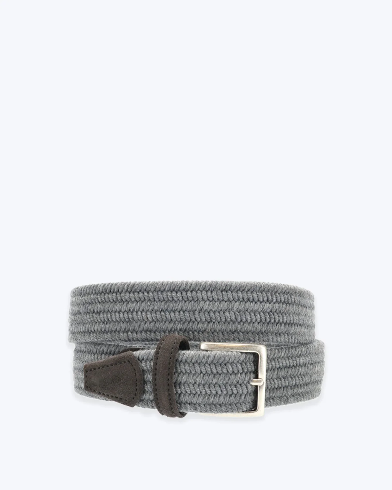 Cinturón trenzado elástico de la marca Anderson´s en color gris, con detalles en ante gris.