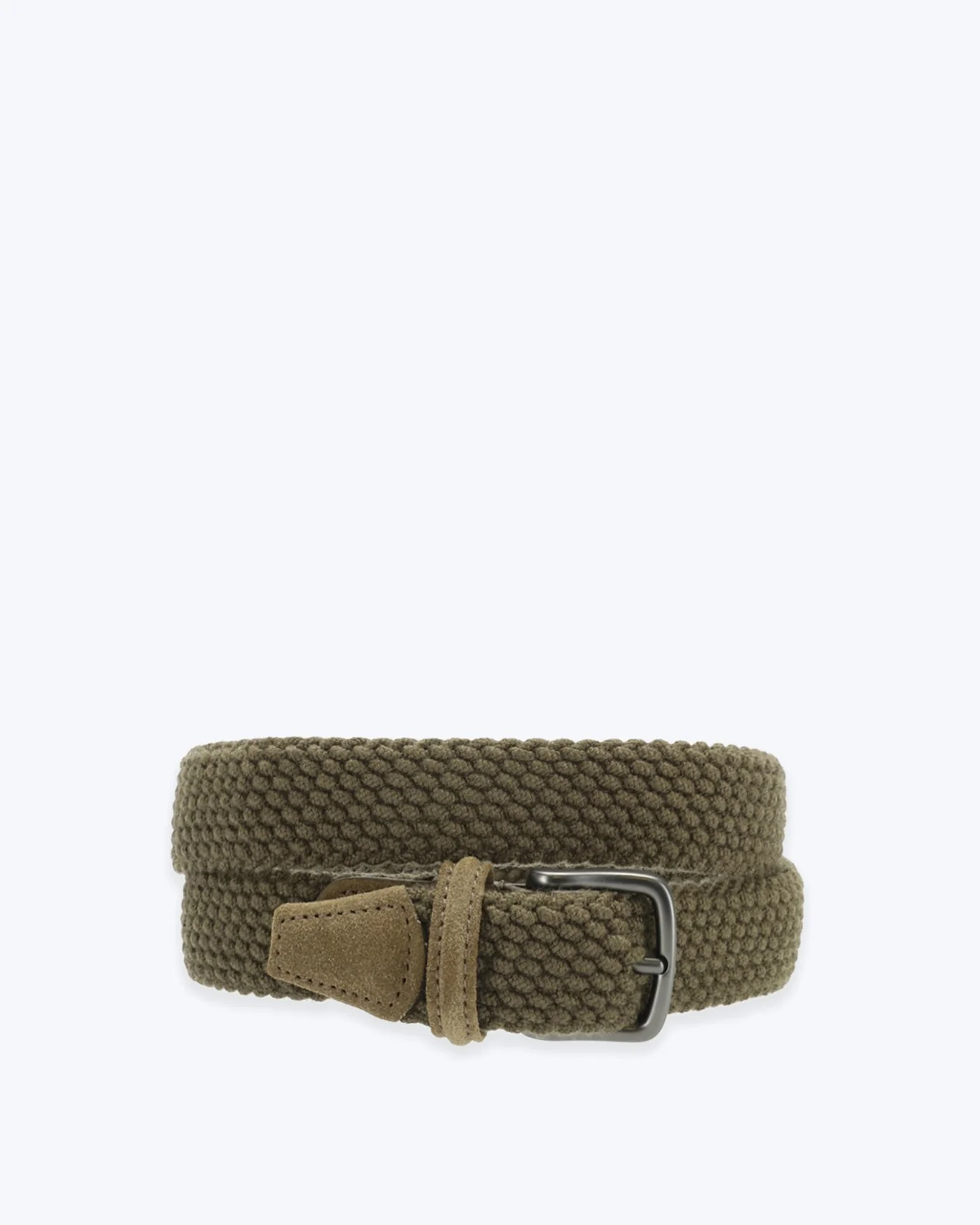 Cinturón trenzado elástico de la marca Anderson´s en color verde, con detalles en ante.