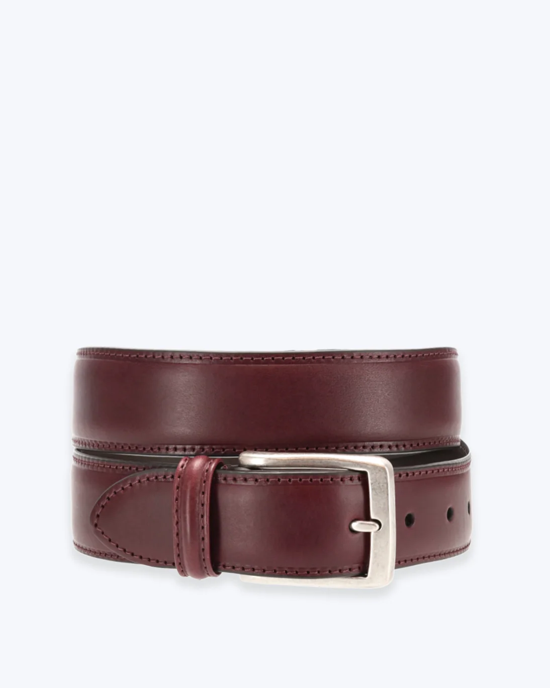 Cinturón de piel burdeos de la marca Anderson’s con hebilla cuadrada.