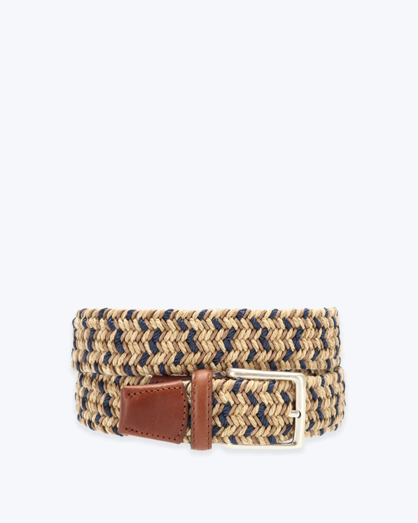Cinturón trenzado de la marca Fulham de color beige y azul.