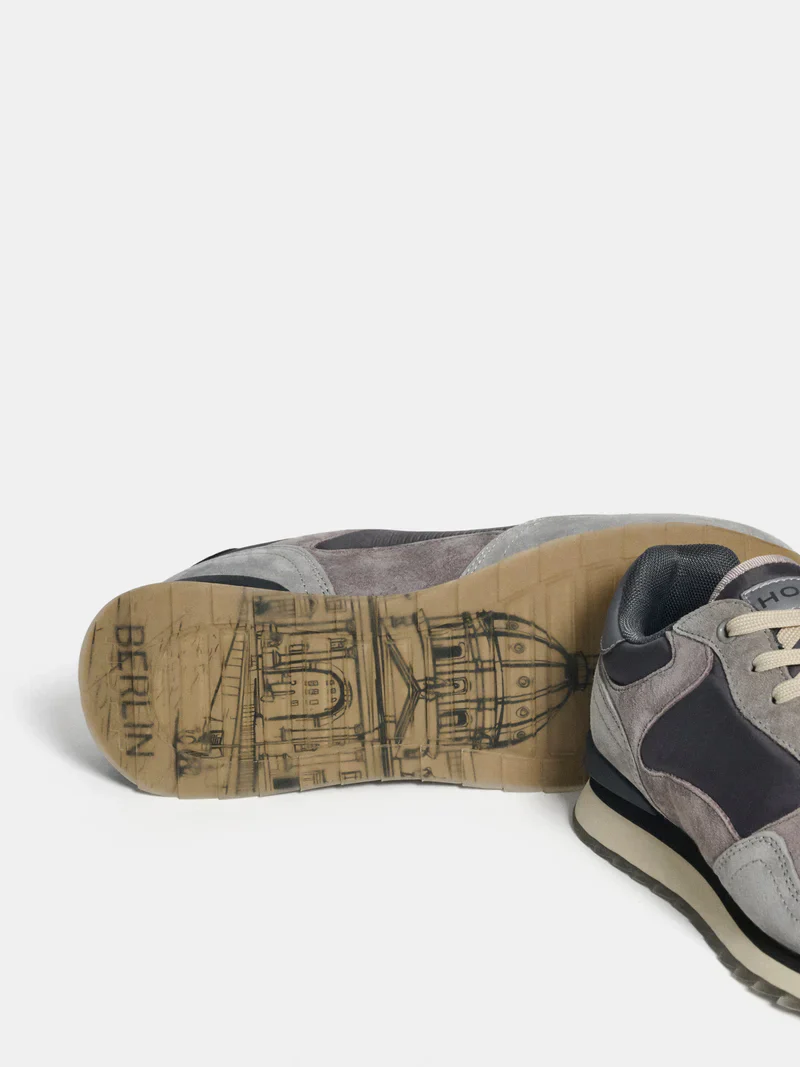 Sneaker de estilo ‘retro’ en combinación de colores y materiales. Detalle de logo en la parte trasera. Suela serigrafiada. Cierre mediante cordones.