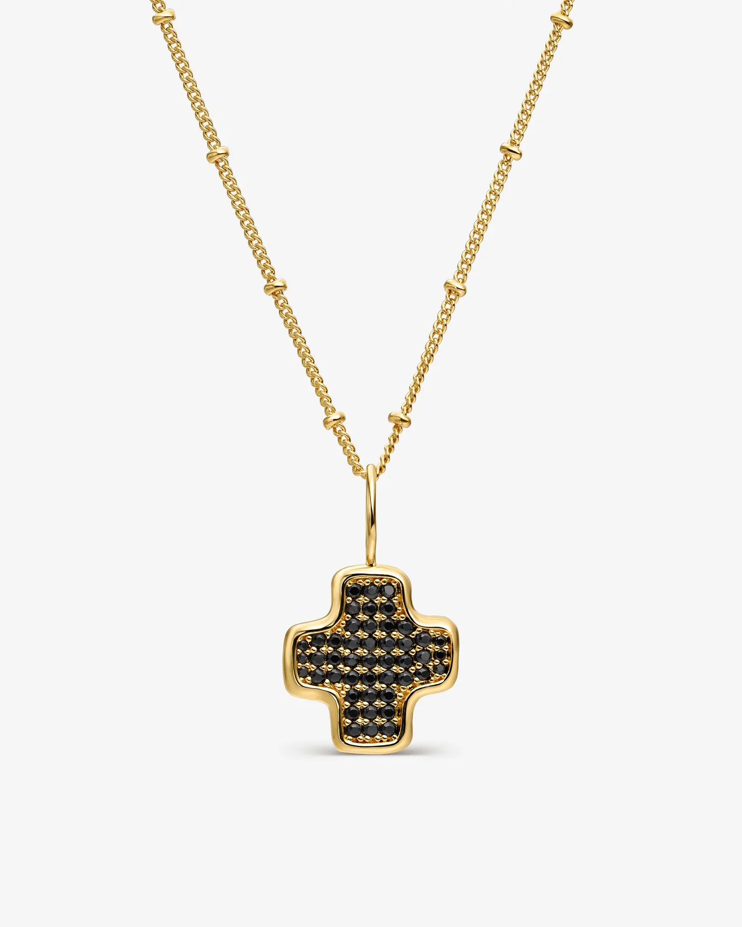 El Colgante Celine es una expresión de elegancia clásica con un toque artesanal. Esta pieza destaca por su cruz esculpido y diseñado a mano. Cuidadosamente elaborada capturando la belleza de todos los detalles. Este colgante cuenta con cincuenta circonitas negras talla brillante engastadas que añaden un delicado toque de luz, y lo convierten en una joya atemporal y con un toque muy cool!