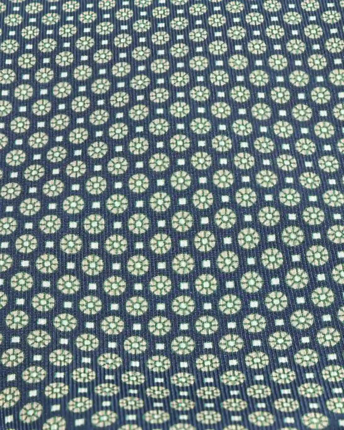 Corbata de seda de la marca Petronius, en color azul claro, estampada con figuras geométricas.
