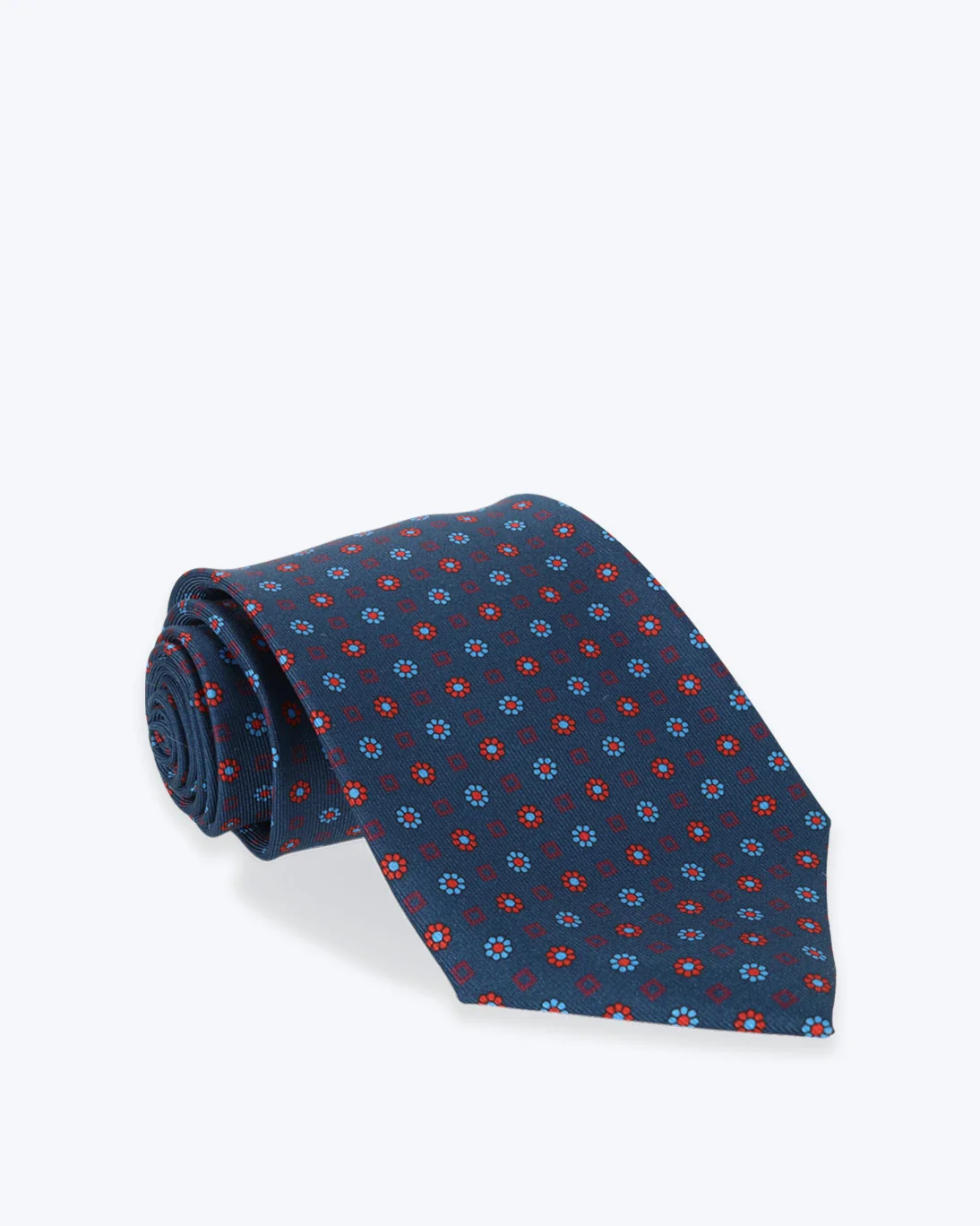 Corbata de seda de la marca Petronius, en color azul estampada con flores.