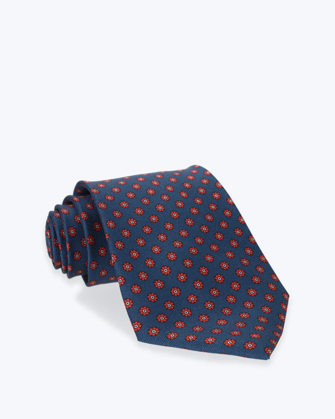 Corbata de seda de la marca Fulham, en color azul estampada con flores.