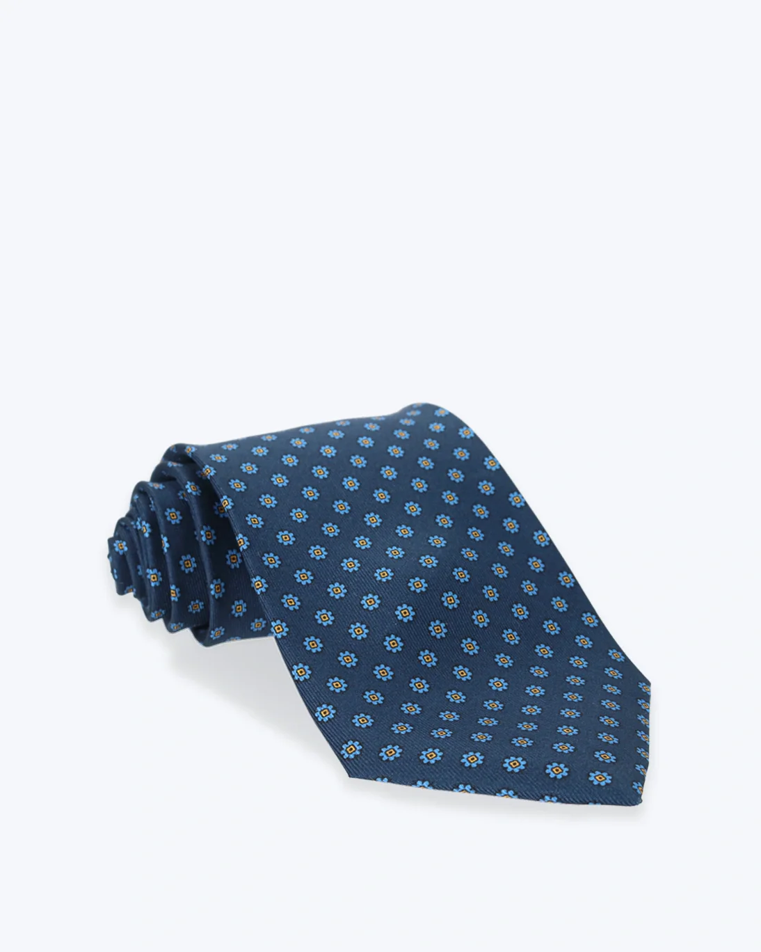 Corbata de la marca Petronius, en color azul, estampada con flores.